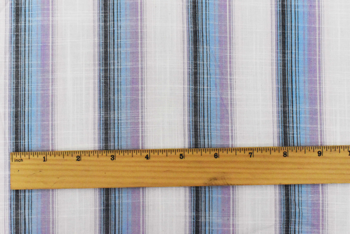 2 YD PC-Purple-Multi Famous Maker Striped Cotton Cross-Hatch Woven Shirting Fabric