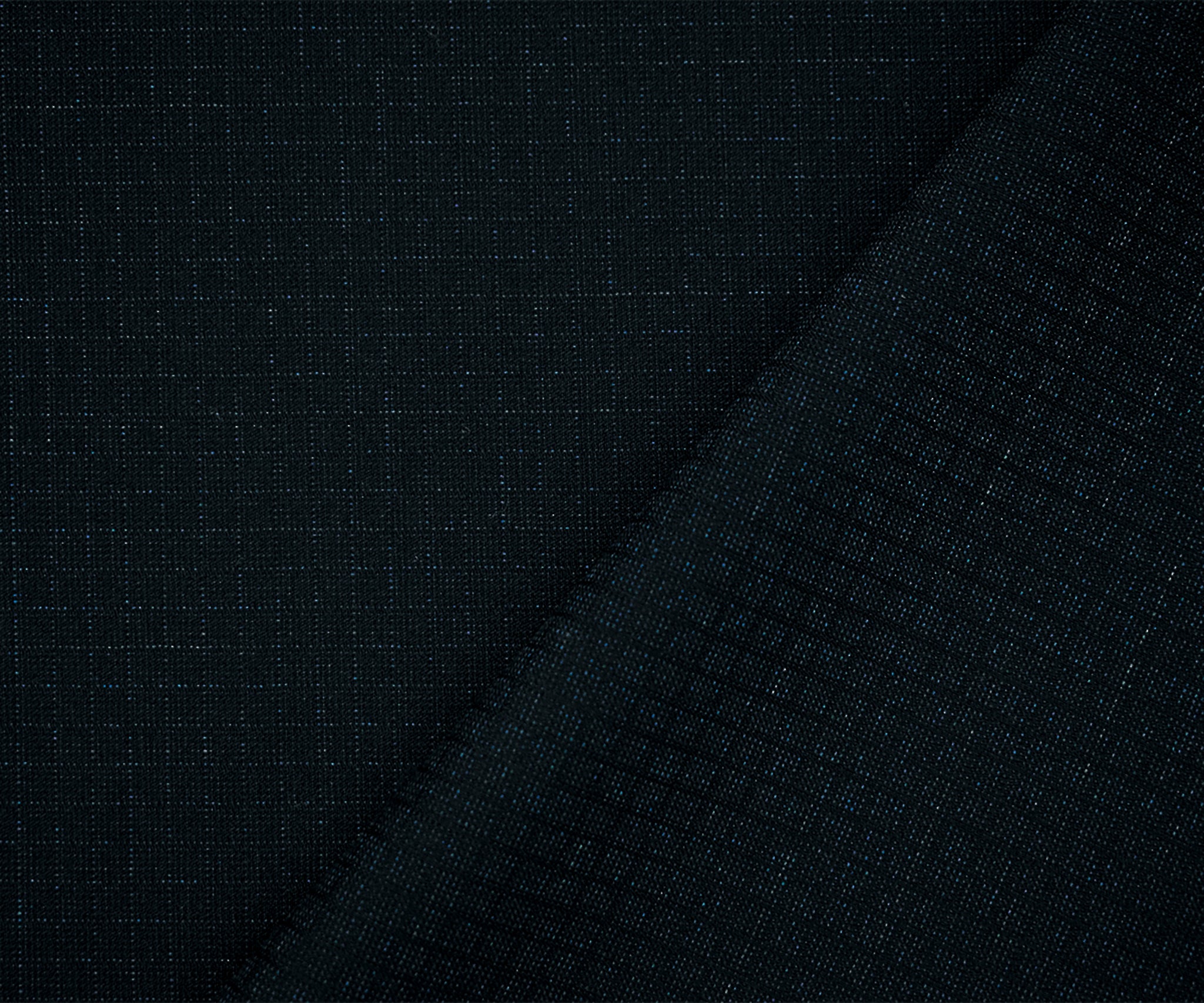 Black-Deep Blue Poly-Wool Stretch Check Grid Shirting Woven Fabric