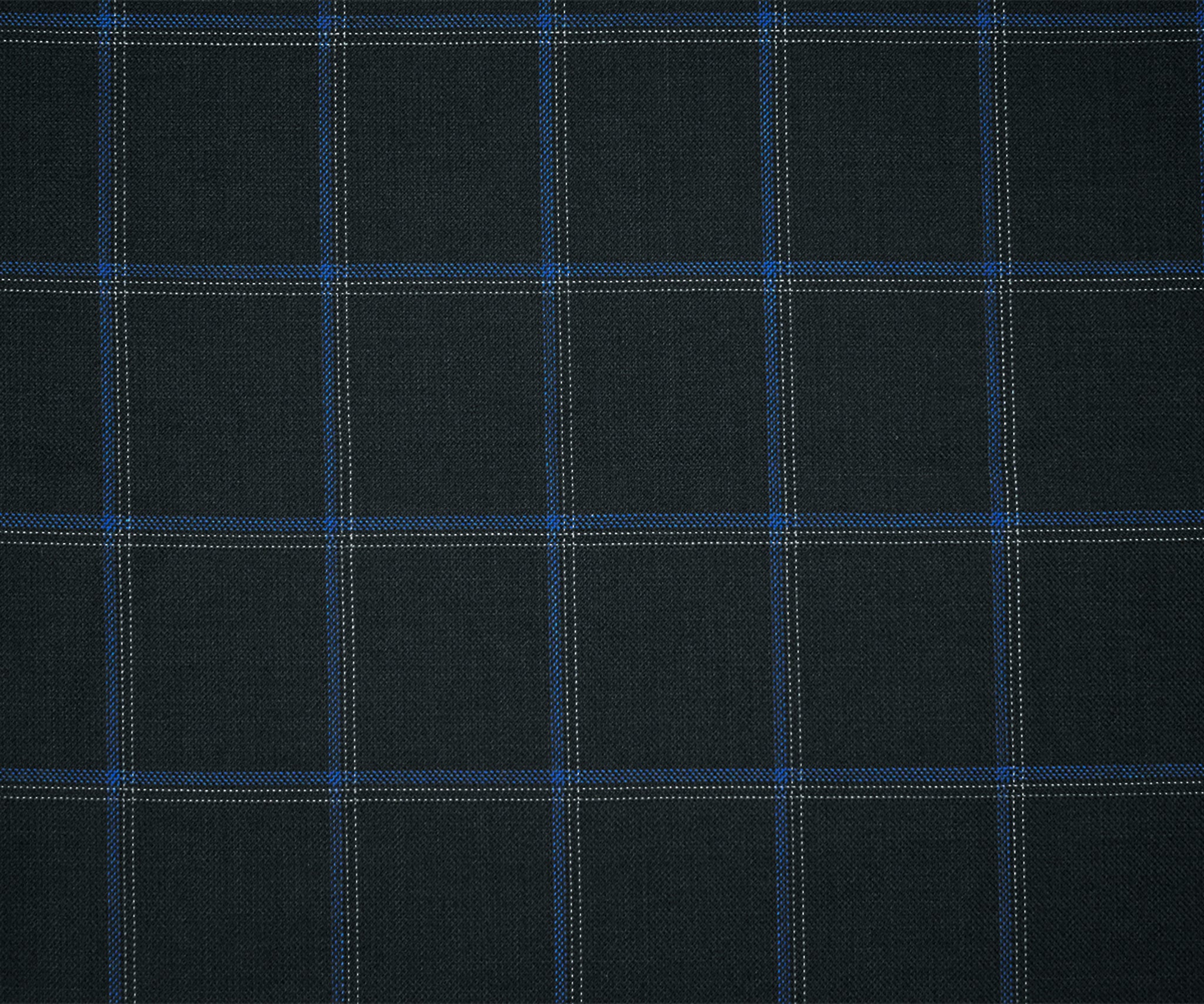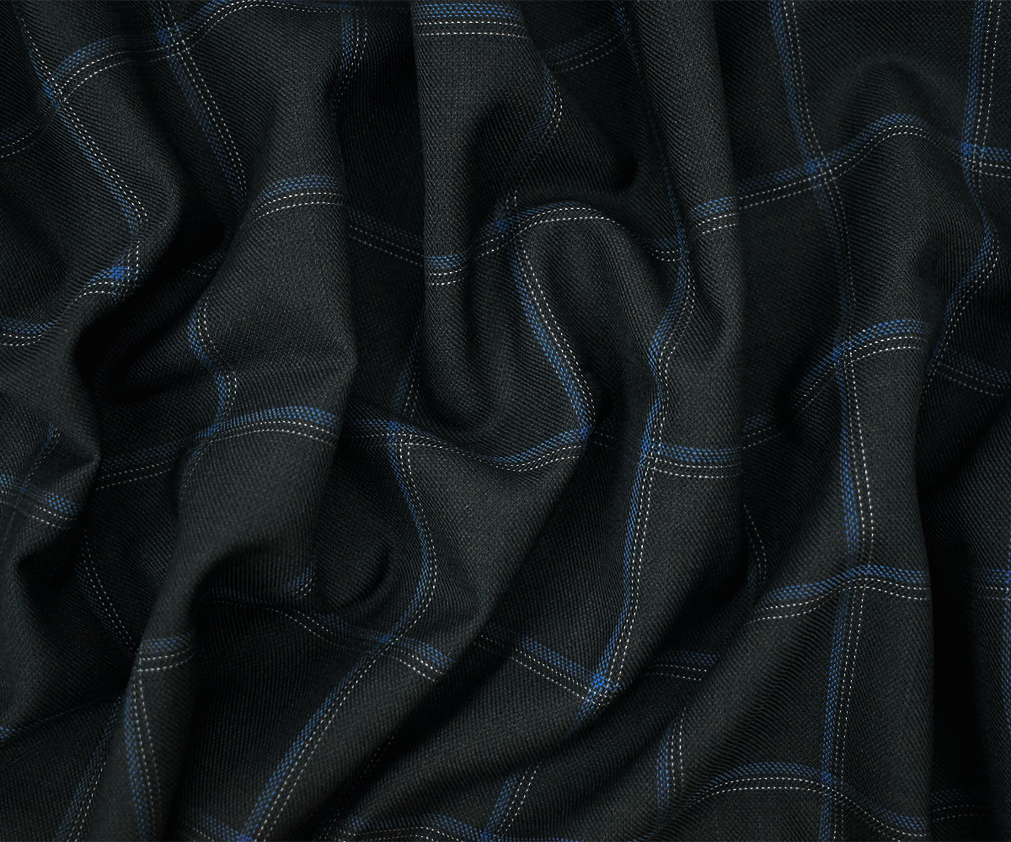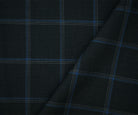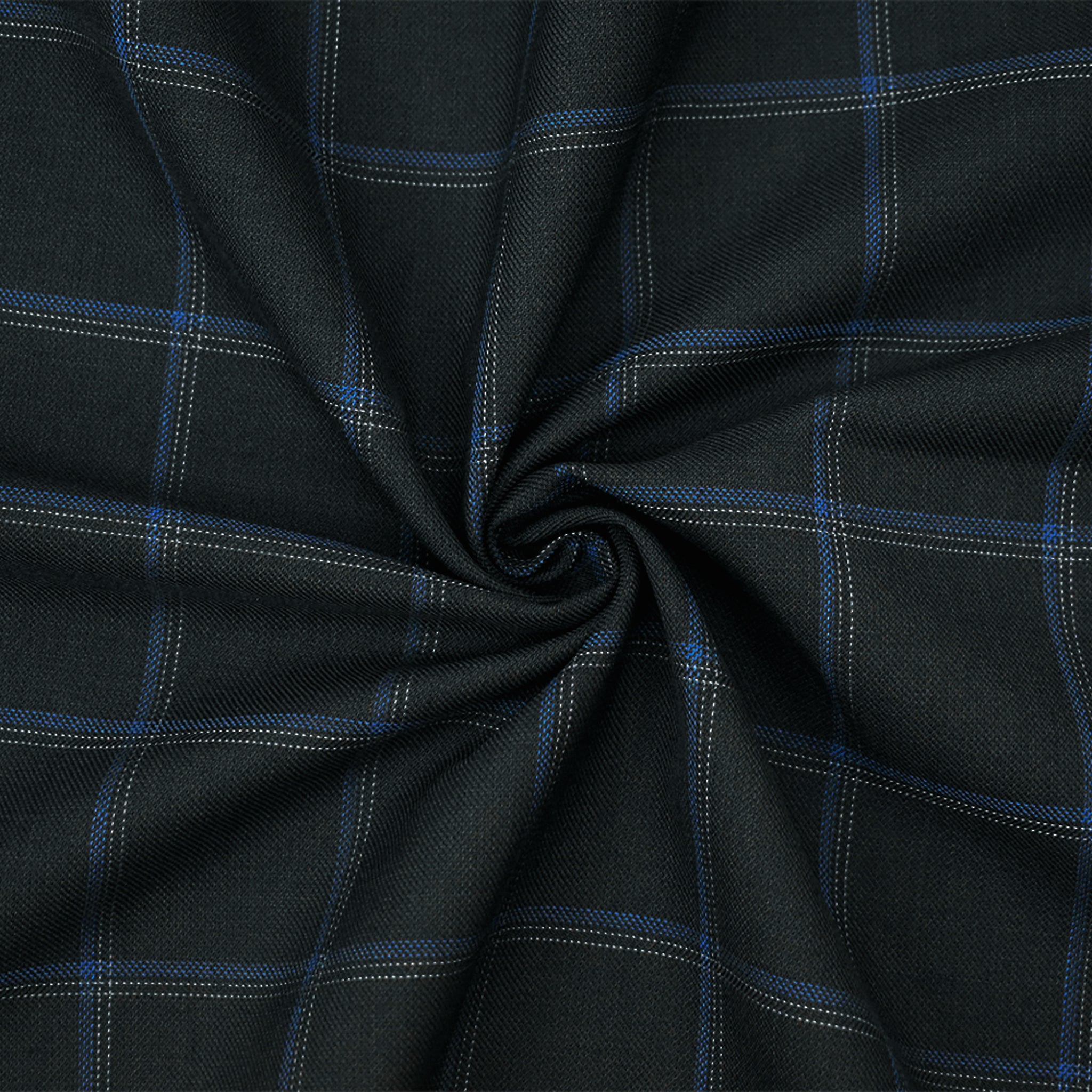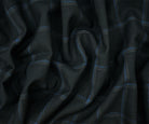 Black-Gray-Blue Poly-Wool Check-Plaid Shirting Twill Woven Fabric