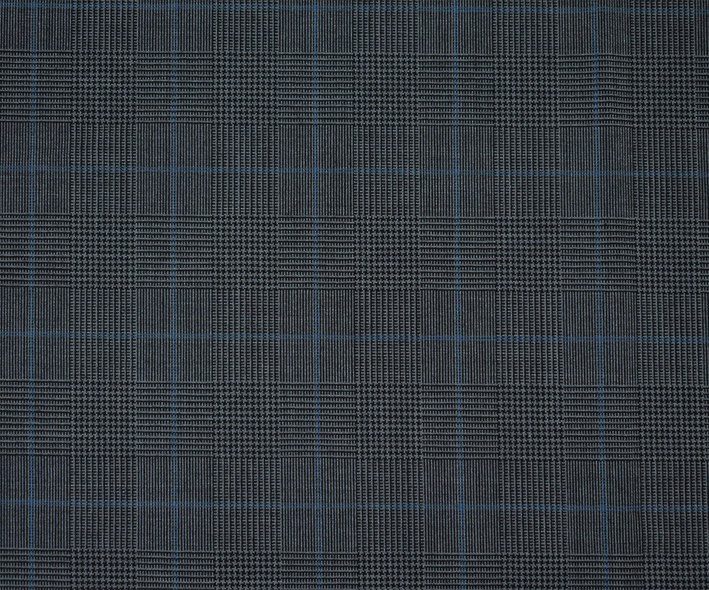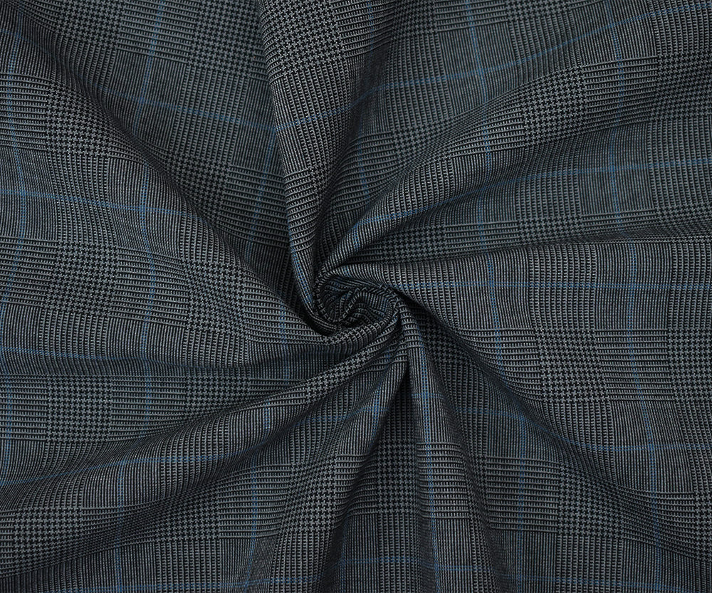 Black-Gray-Blue Wool Polyester Glen Plaid Check Shirting Woven Fabric