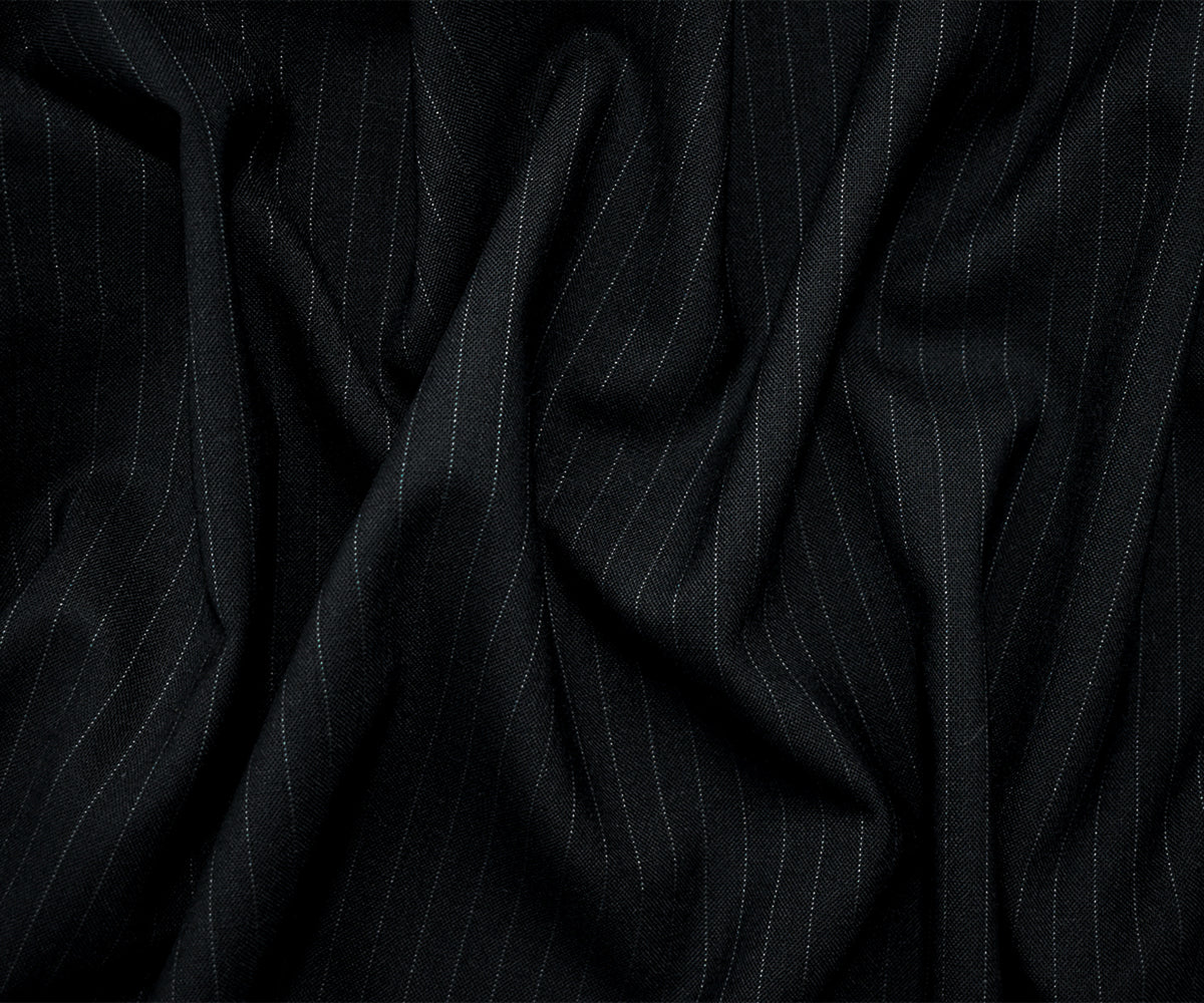 Black-Gray Tropical Poly-Wool Japanese Vertical Stripe Shirting Woven Fabric