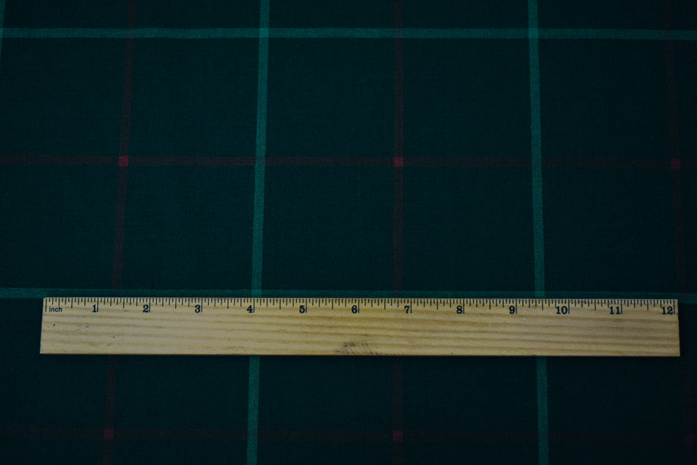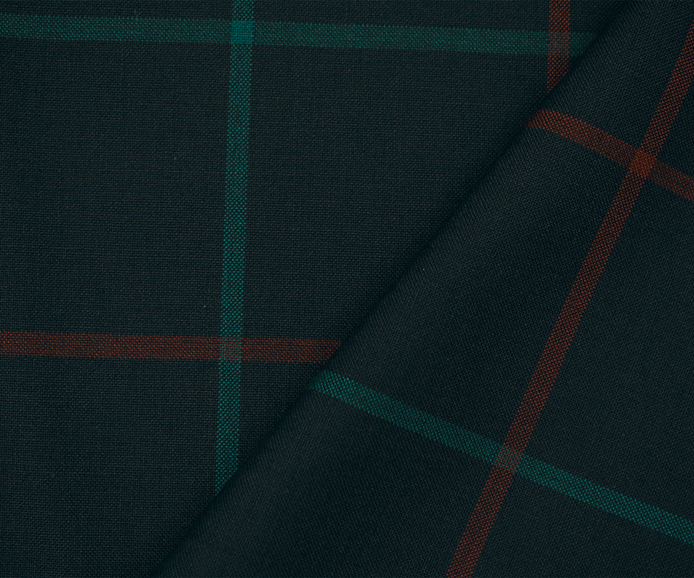 Black-Green-Red Wool Polyester Check Woven Shirting Fabric