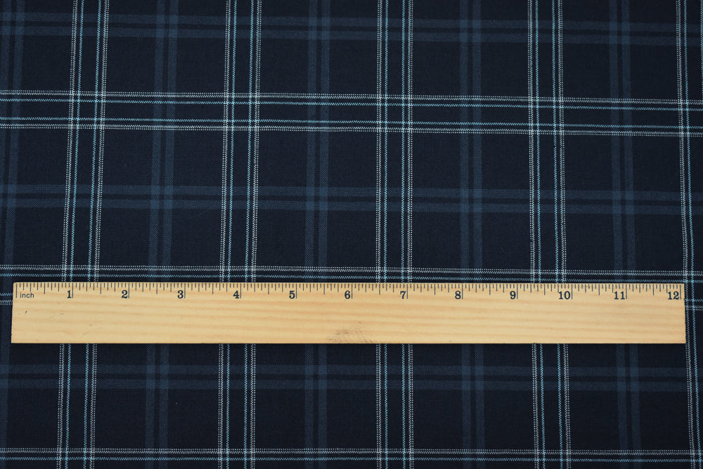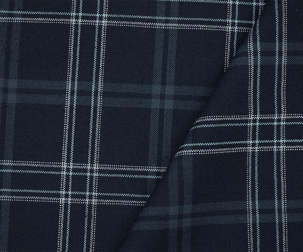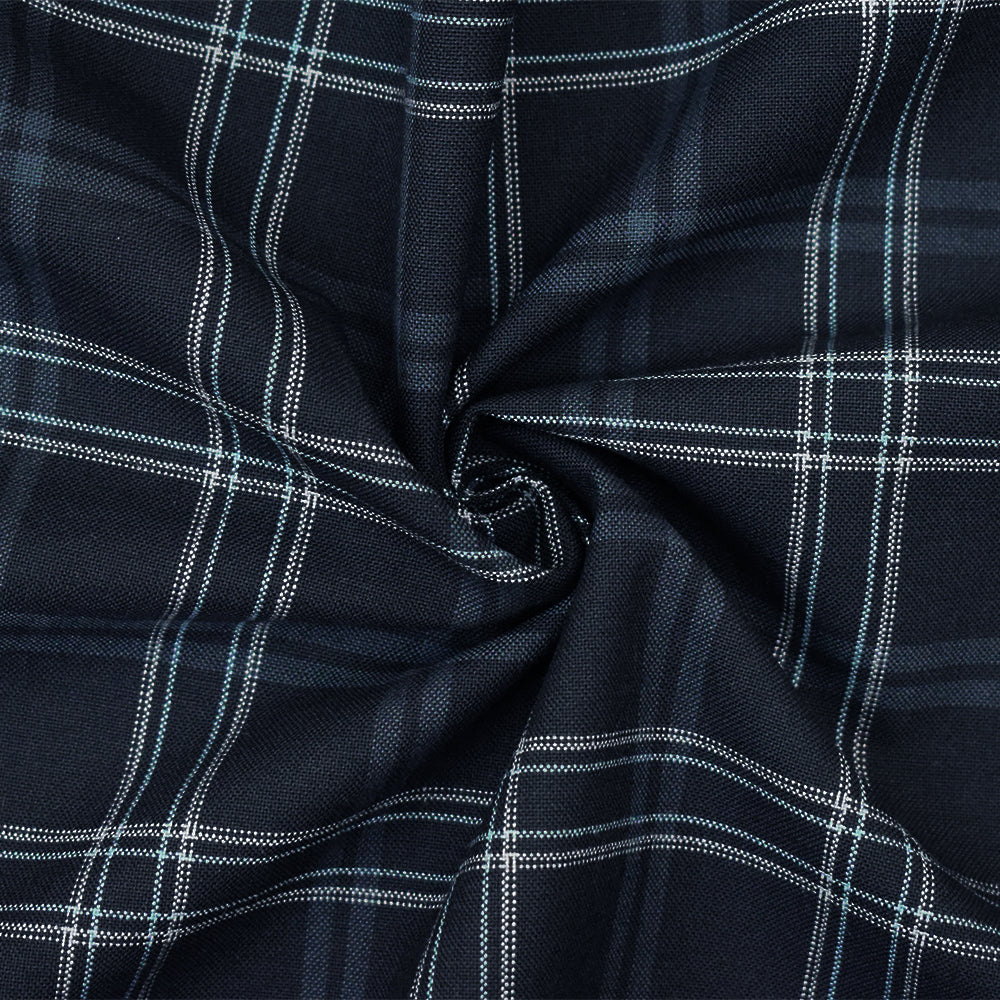 Black-Light Blue-Multi Poly Wool Plaid Woven Shirting Fabric
