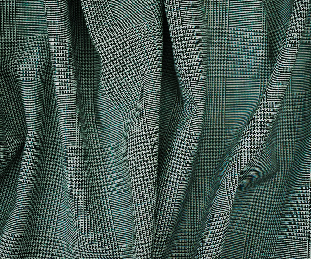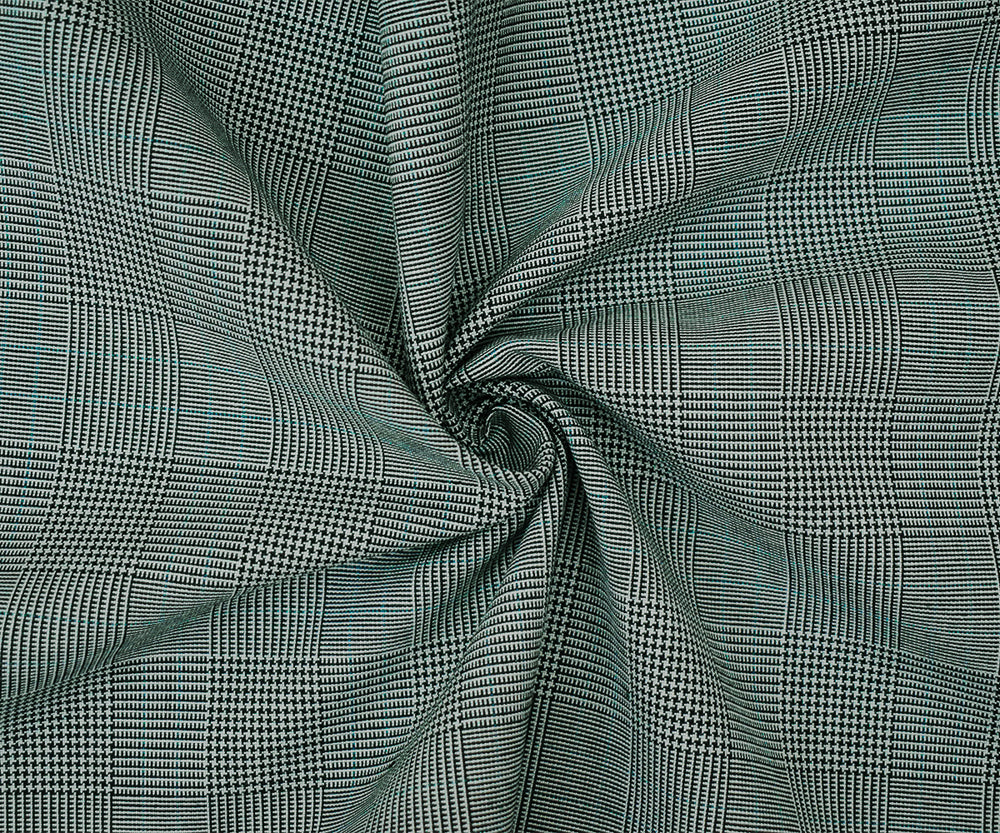Black-Light Gray-Green Poly-Wool Glen Plaid Woven Shirting Fabric