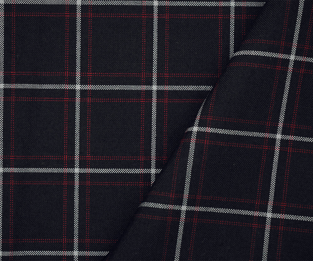 Black-Red-Gray Polyester Wool Check Plaid Shirting Woven Fabric