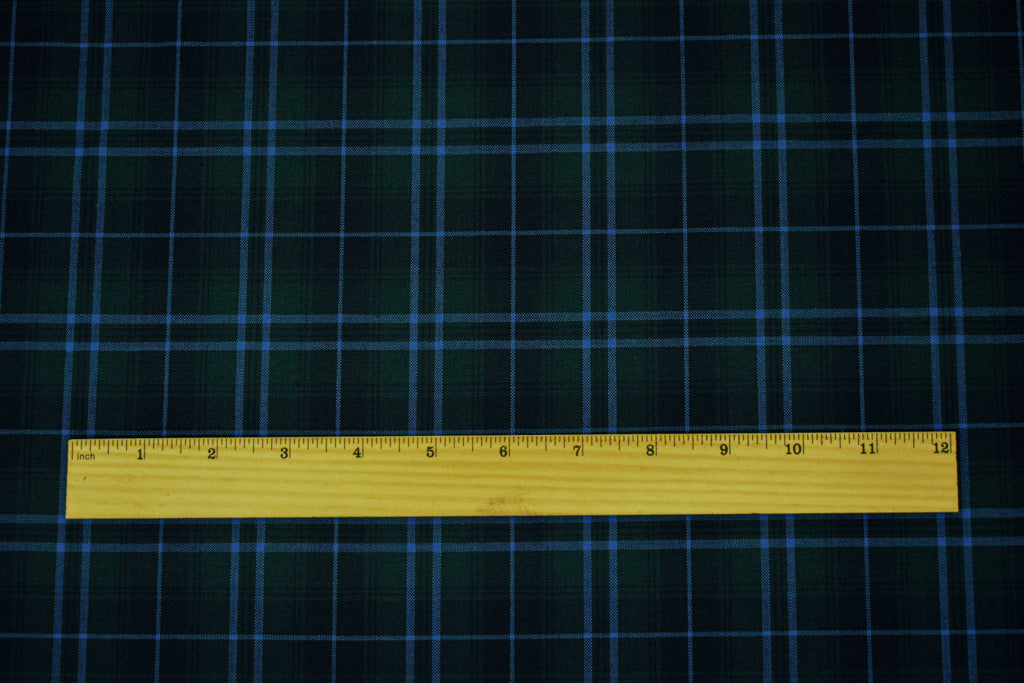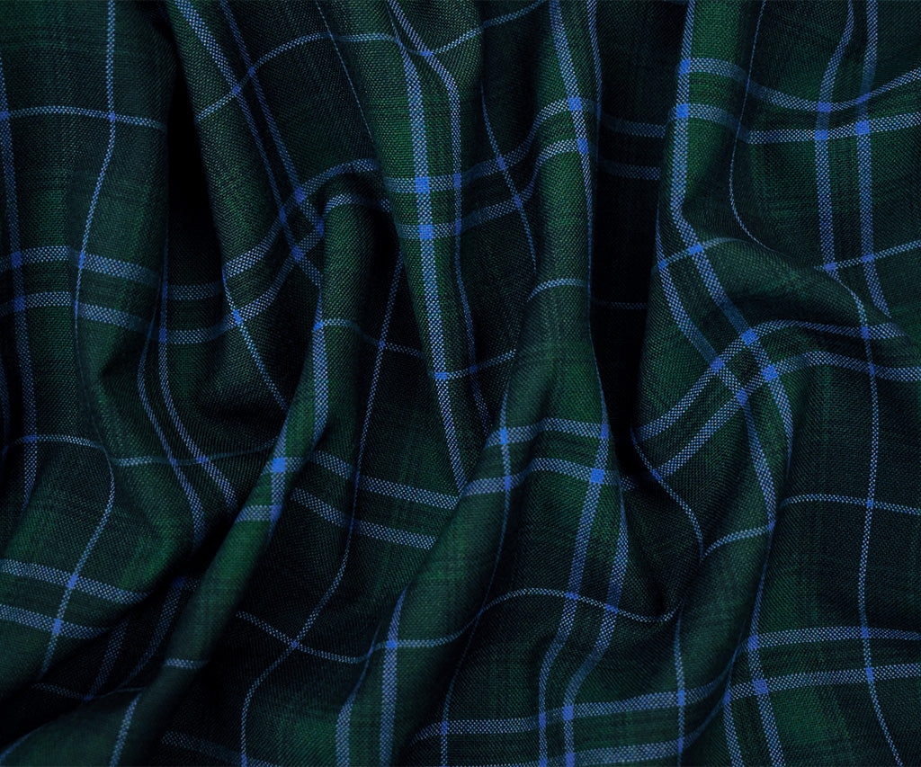 Blue-Green-Multi Poly Wool Plaid Check Shirting Woven Fabric