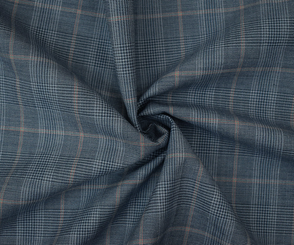 Blue-Orange-Multi Wool Poly Glen Plaid Check Shirting Woven Fabric