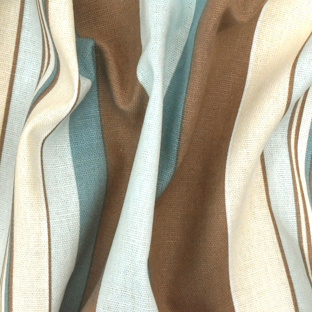 Brown-Blue-Multi Stripe Printed Slub Cotton Woven Shirting Fabric