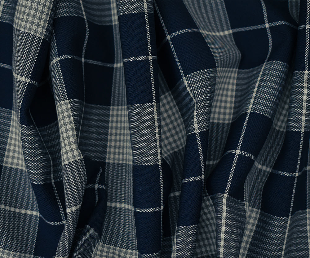 -Wool and polyester blend plaid check shirting woven fabric. Made in Japan.