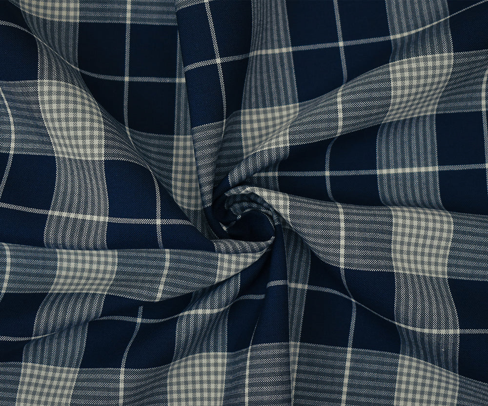 Deep Blue-Gray-Multi Wool Polyester Plaid Check Woven Shirting Fabric