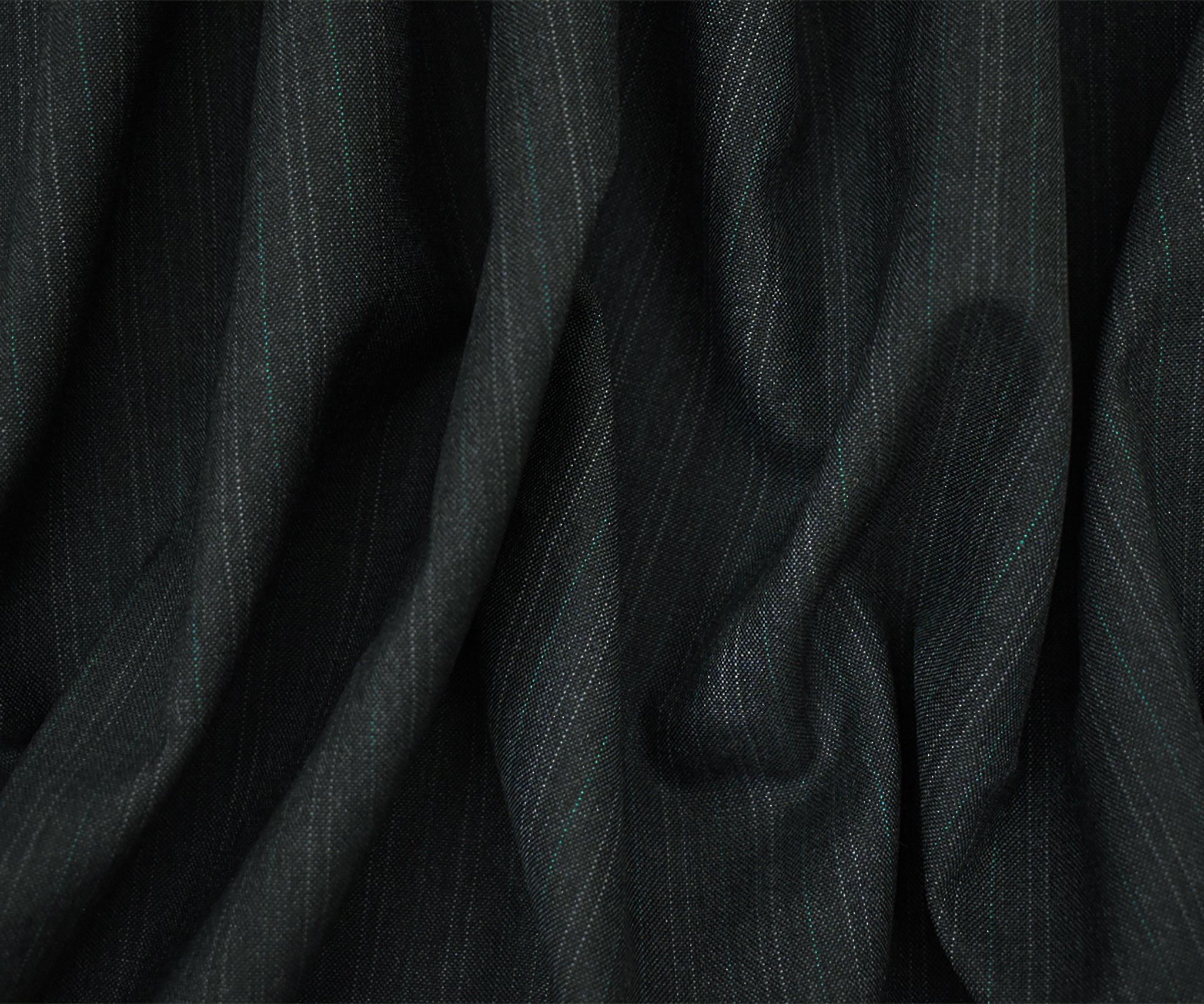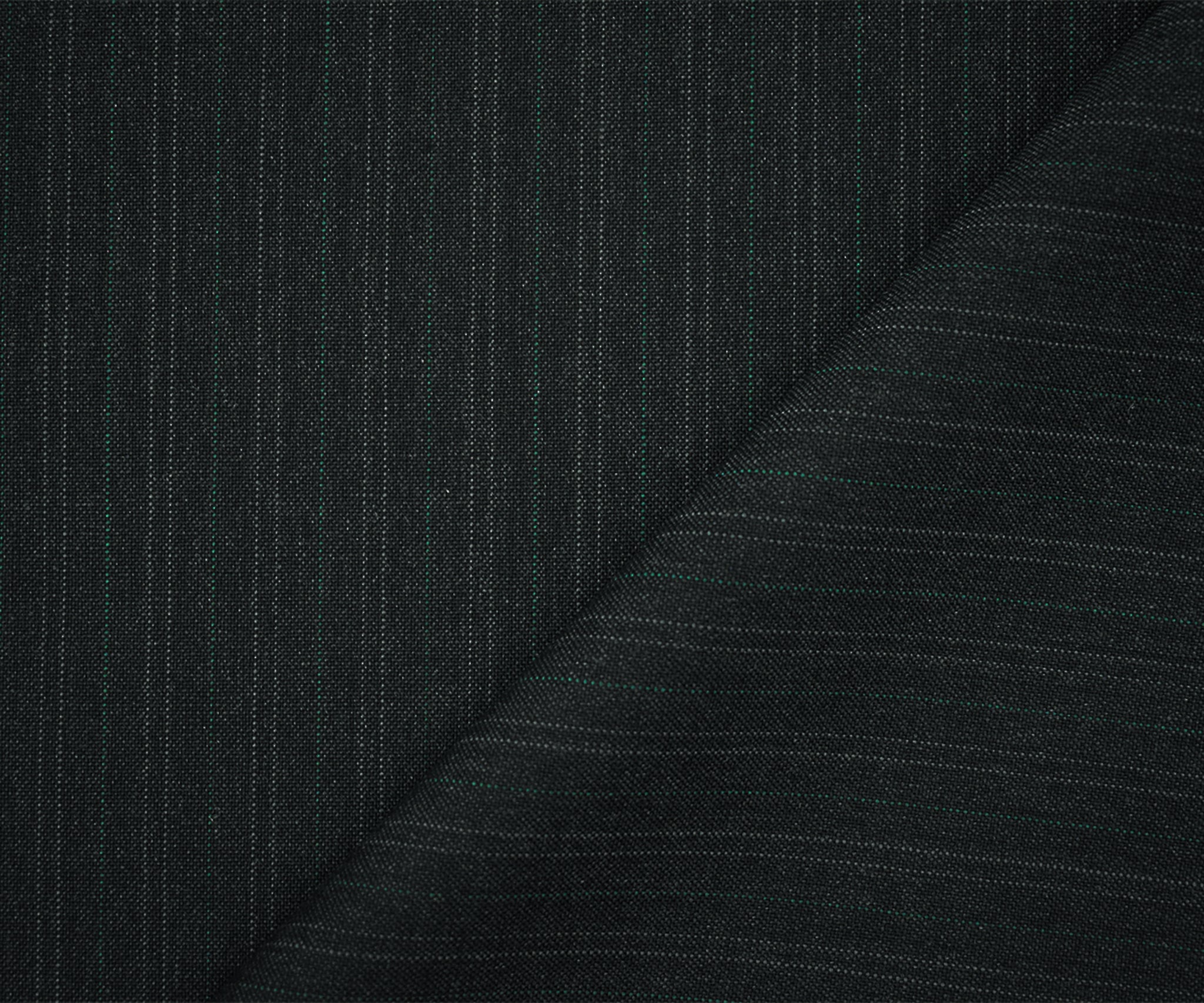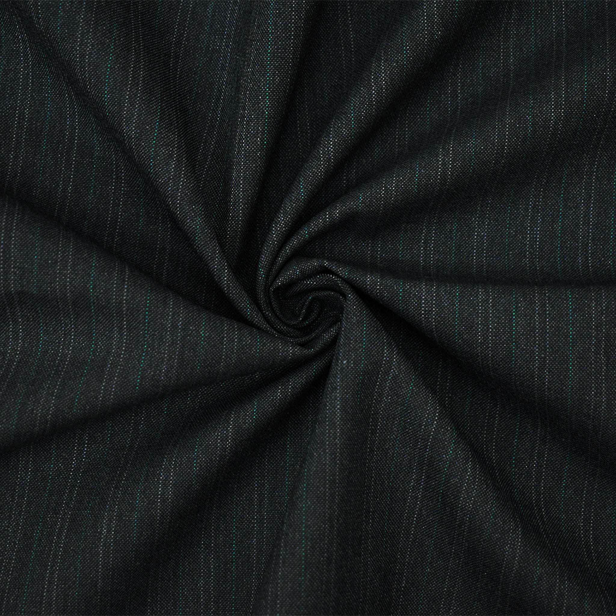 Deep Gray-Green Wool-Poly Pinstripe Woven Shirting Fabric