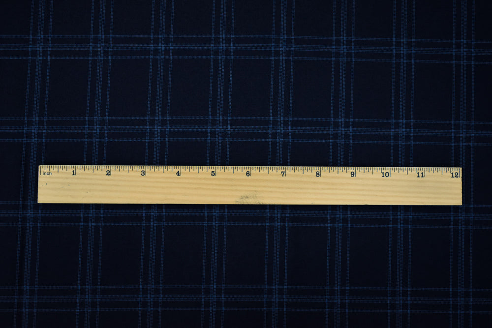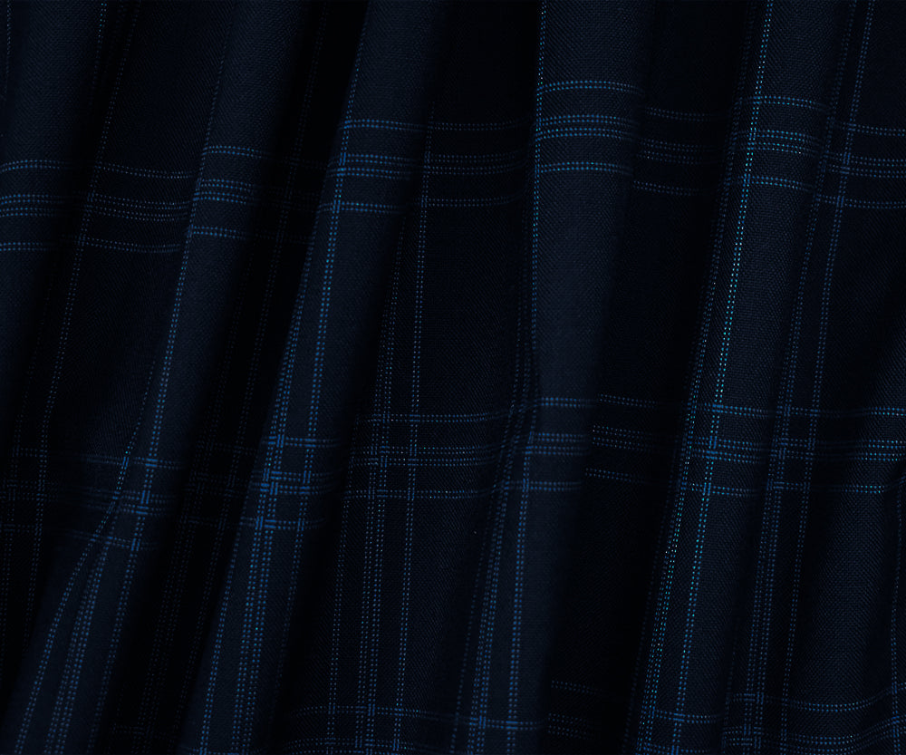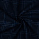 Deep Navy-Blue Poly-Wool Plaid Woven Shirting Fabric