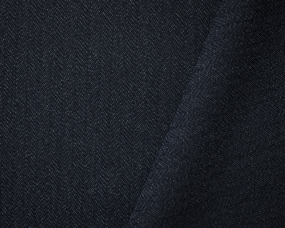 Deep Navy-Gray Wool Poly Herringbone Twill Woven Shirting Fabric