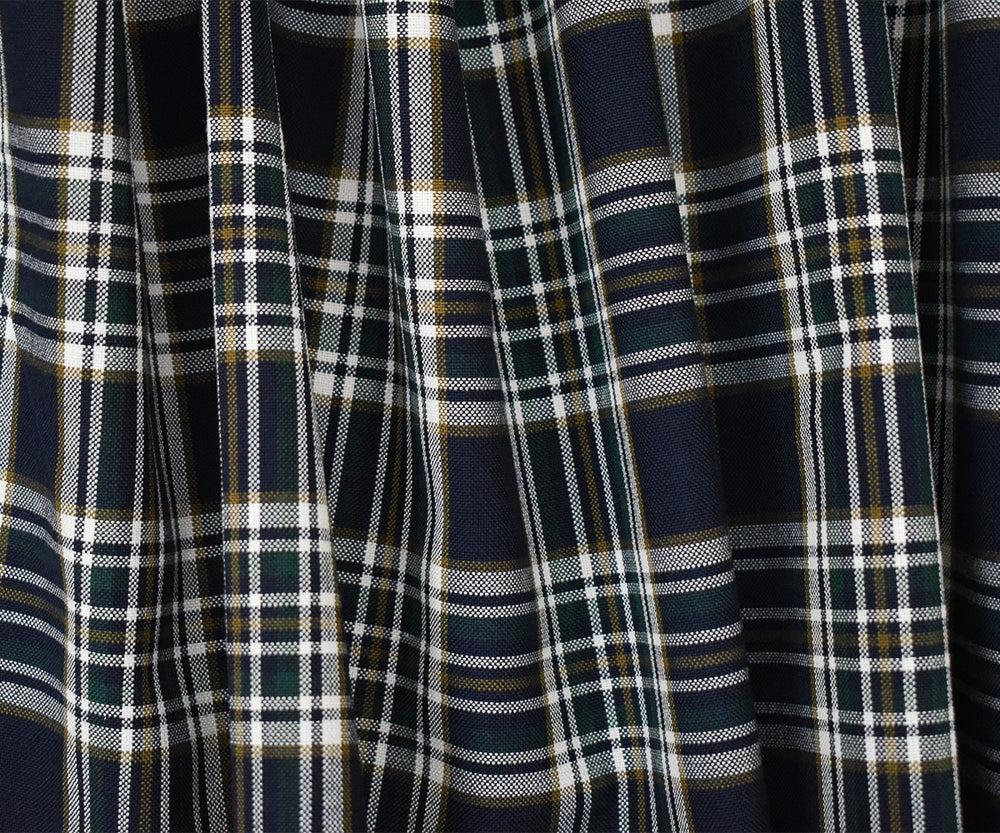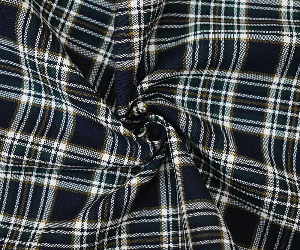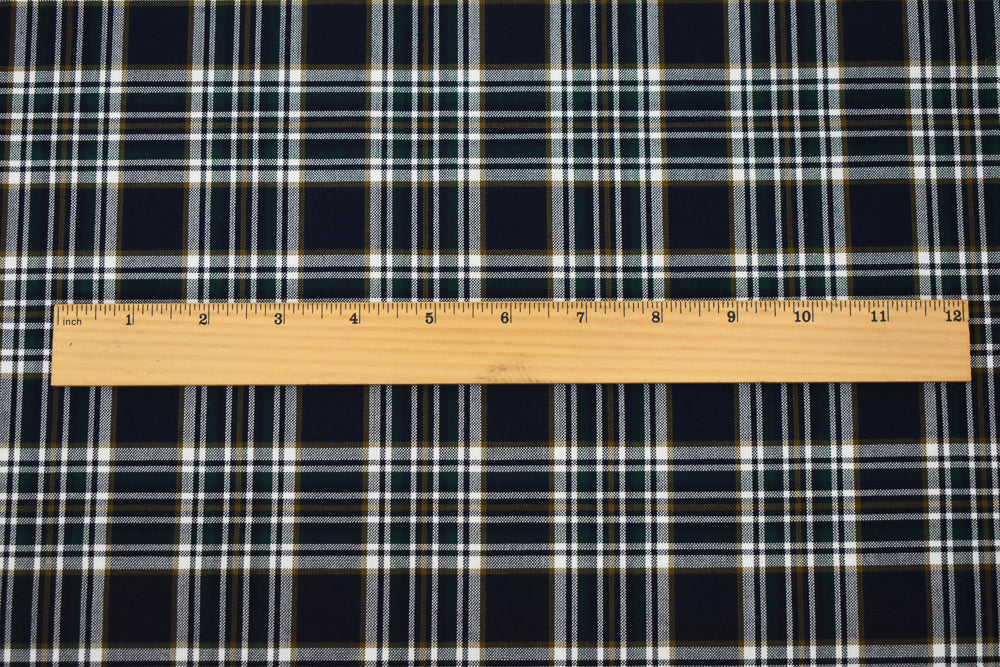 Deep Navy-Green-Multi Wool Polyester Plaid Shirting Woven Fabric
