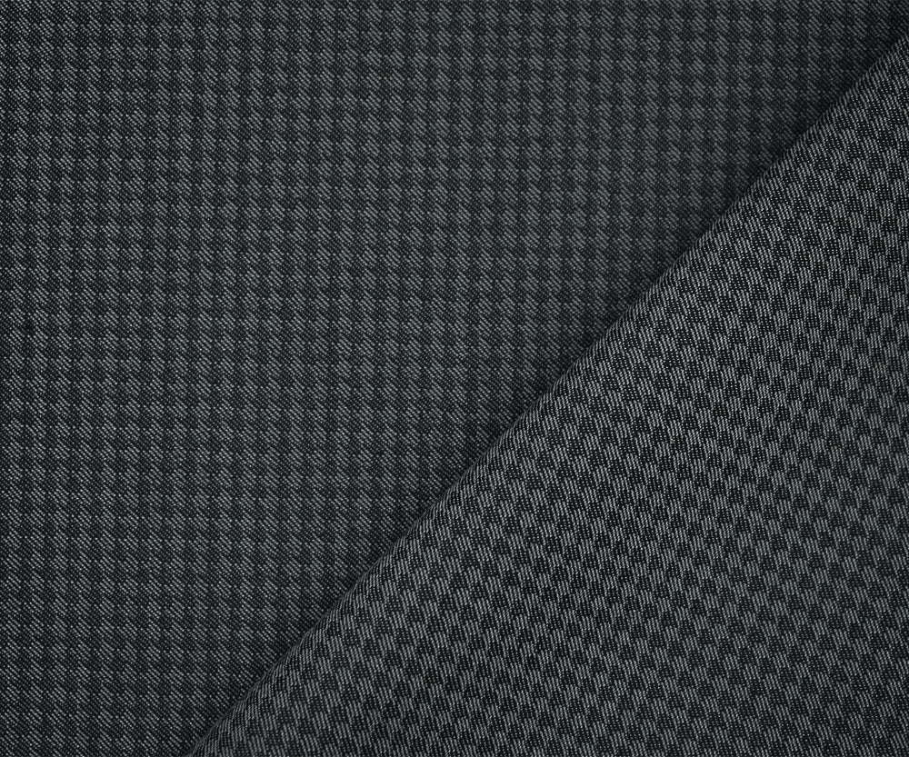 Gray-Black Poly-Wool Houndstooth Woven Shirting Fabric