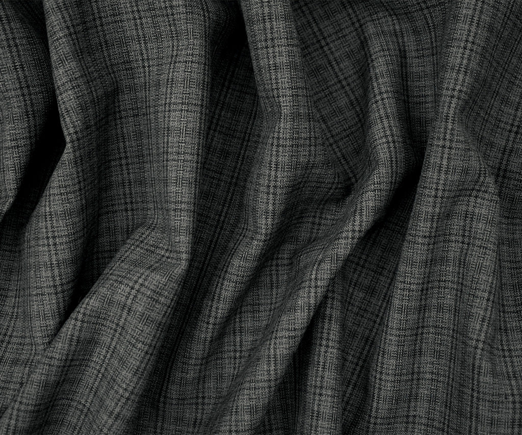 Gray-Black Polyester-Wool Plaid Shirting Woven Fabric