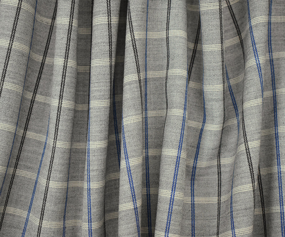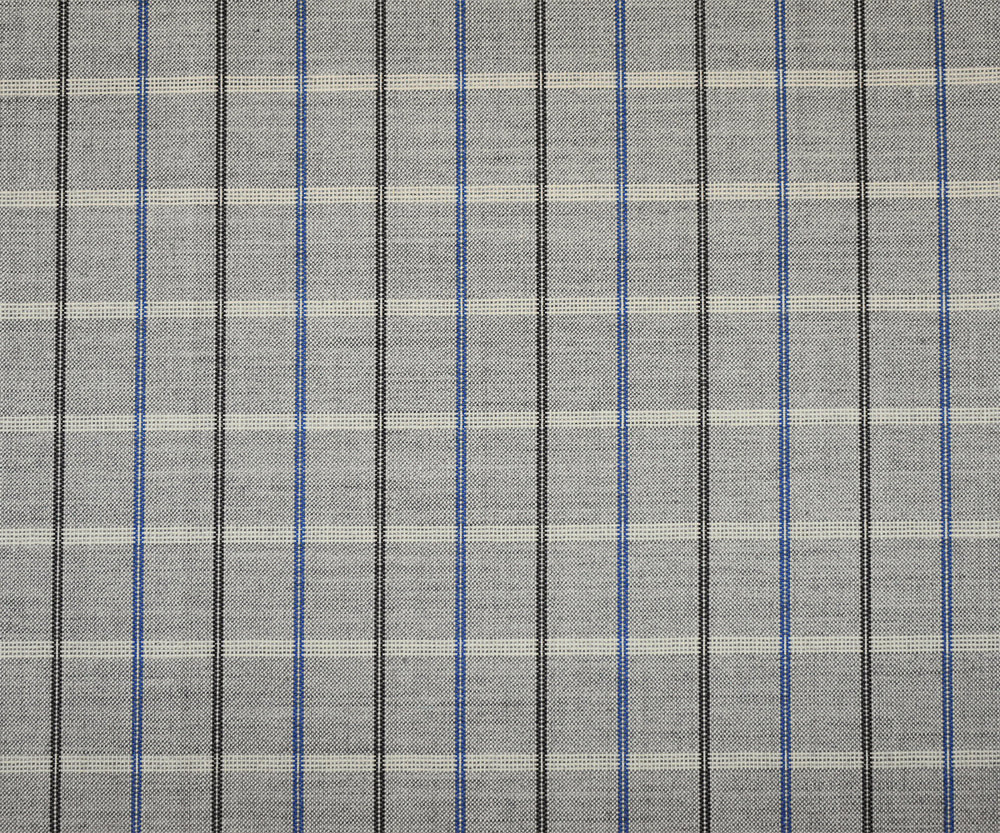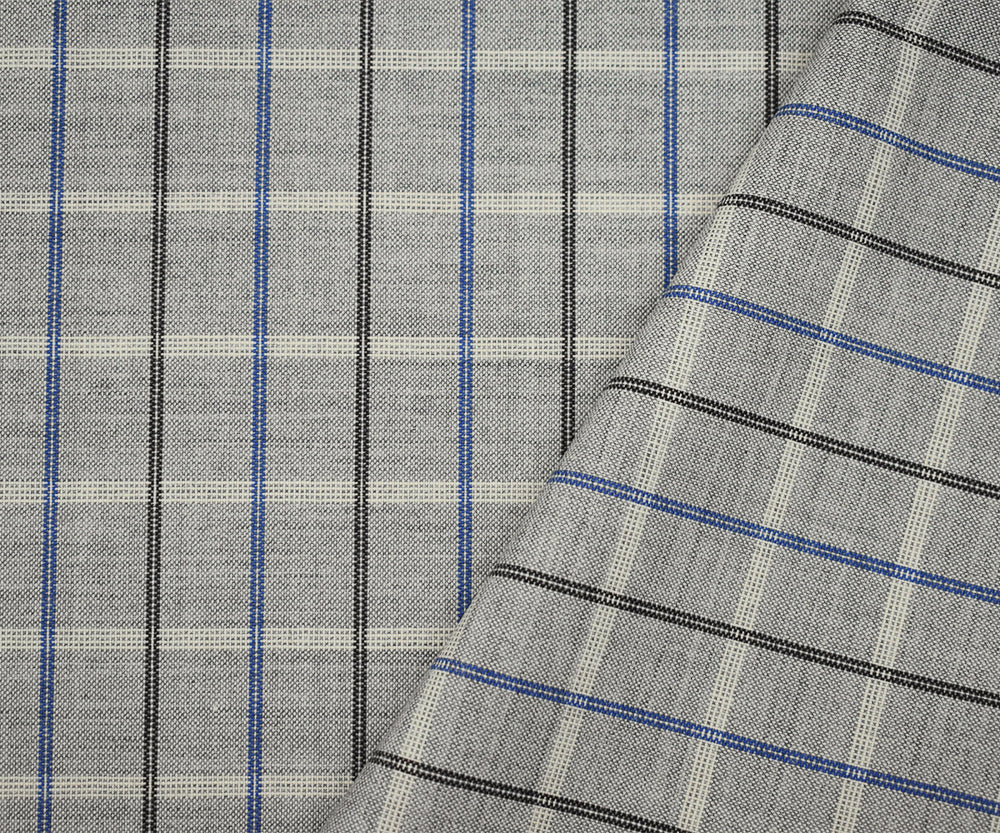 Gray-Blue-Multi Poly Wool Check Plaid Woven Shirting Fabric