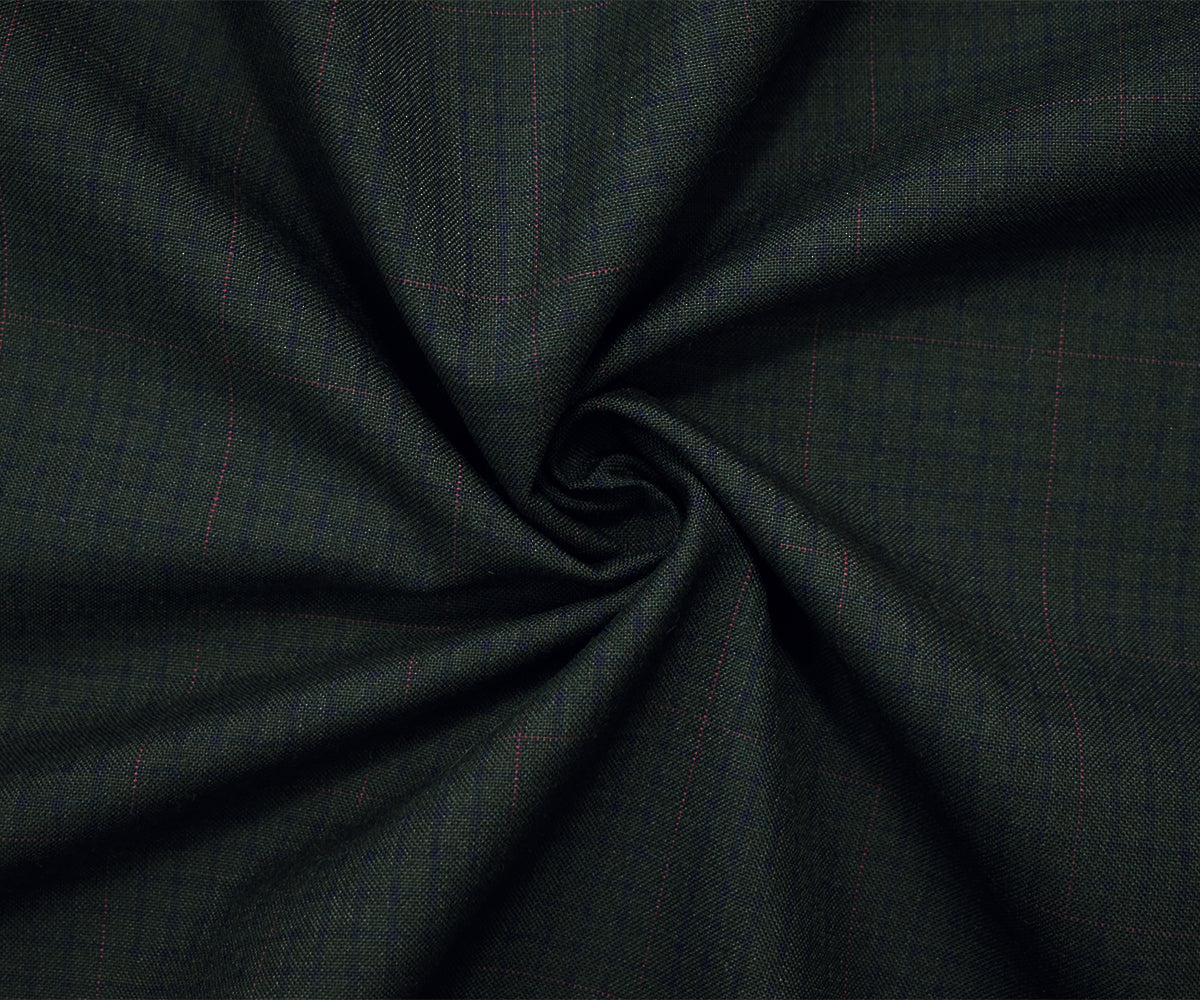 Gray-Blue-Red Wool-Poly Plaid Check Woven Shirting Fabric
