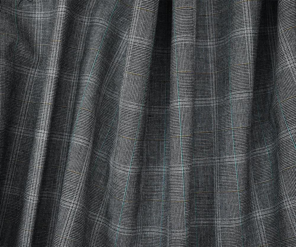 Gray-Green-Multi Poly-Wool Check Tile Shirting Woven Fabric