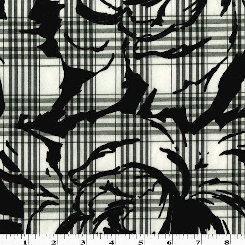 Gray/Multi Velvet Flocked Floral Print Plaid Shirting Fabric