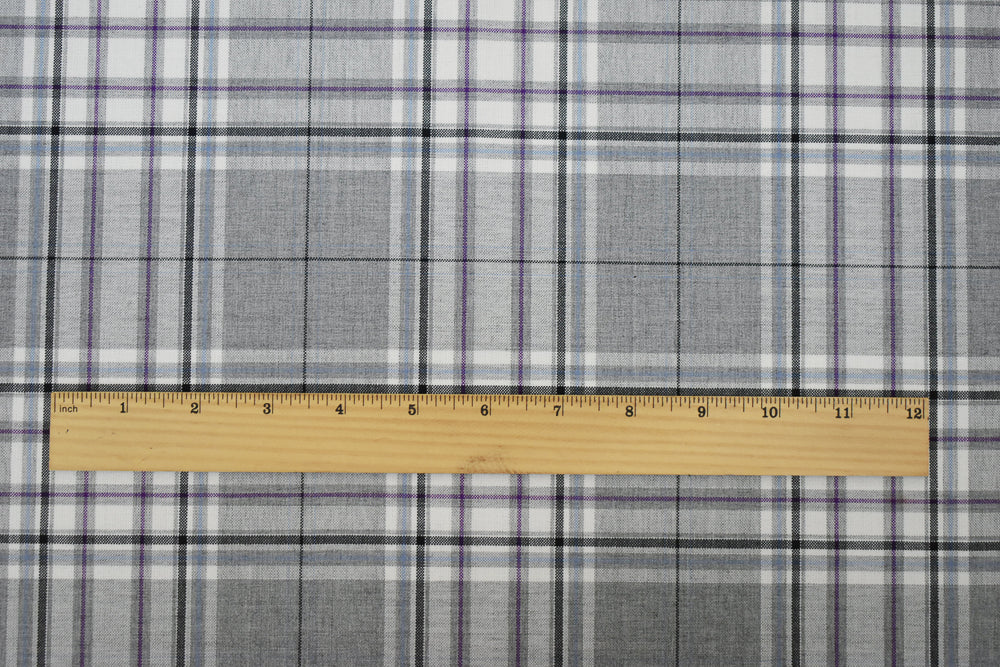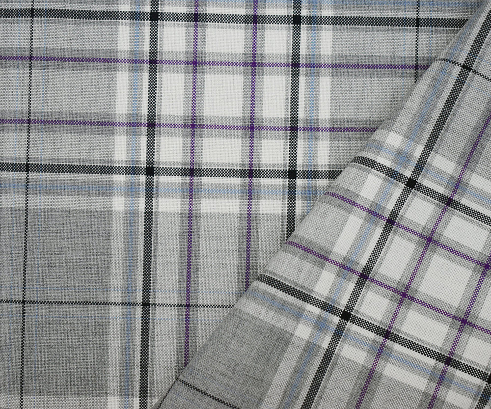 Gray-Purple-Multi Wool Polyester Plaid Woven Shirting Fabric