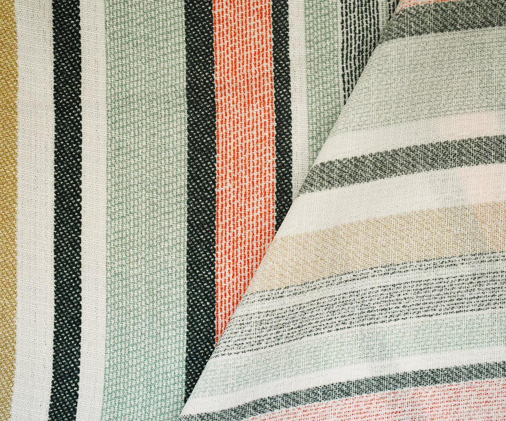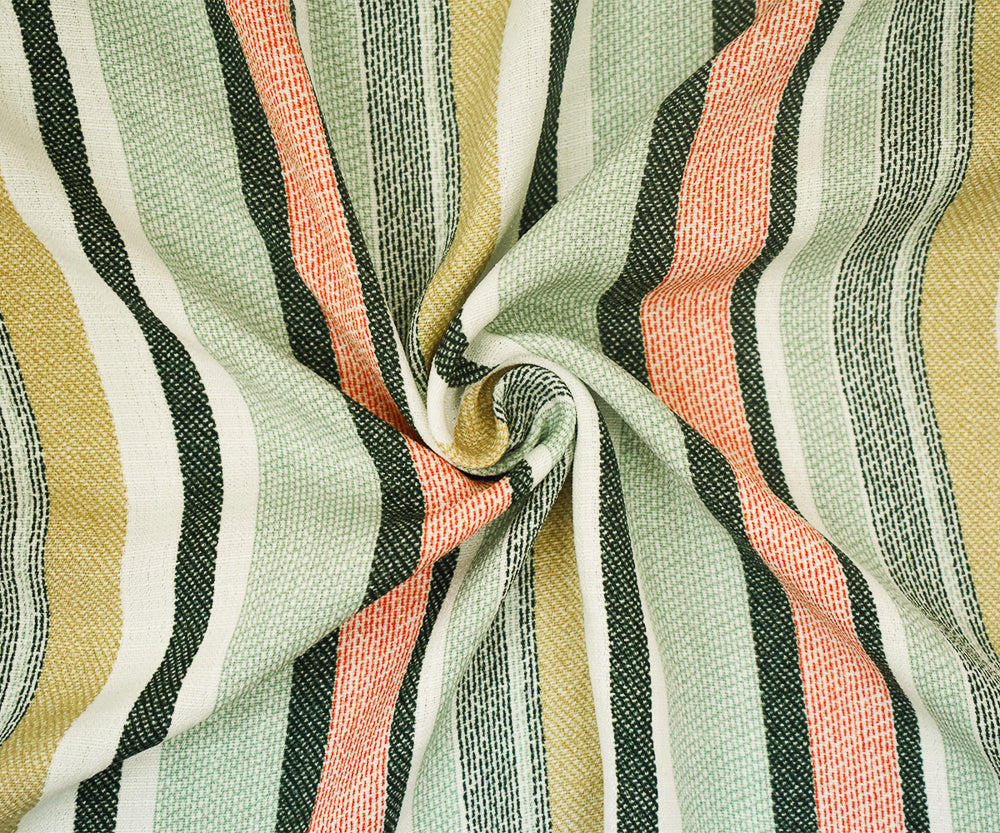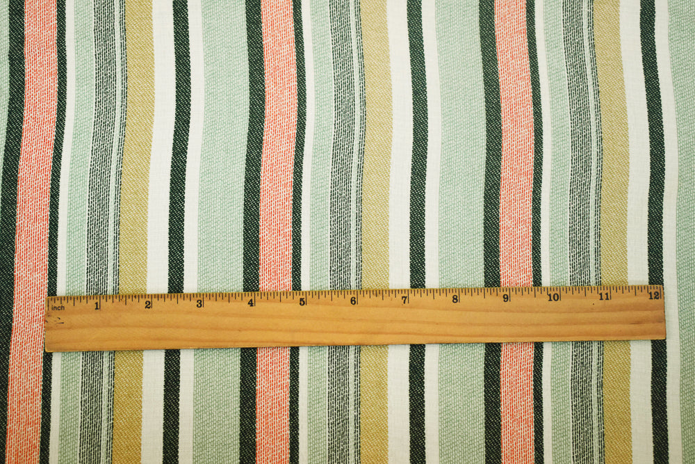 Green-White-Multi Stripe Printed Poly Shirting Woven Fabric