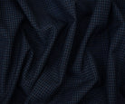 Navy-Blue-Gray Wool Poly Grid Check Woven Shirting Fabric
