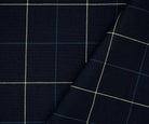 Navy-Blue-Ivory Polyester-Wool Check Woven Shirting Fabric
