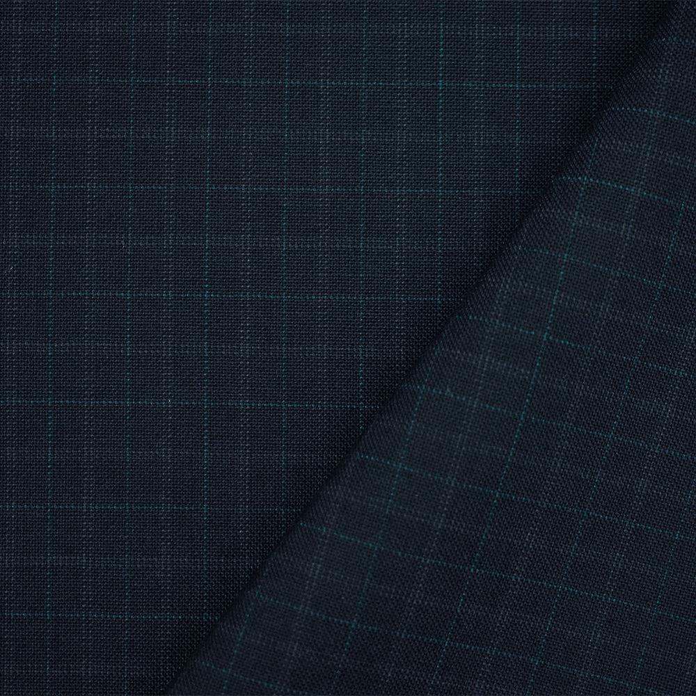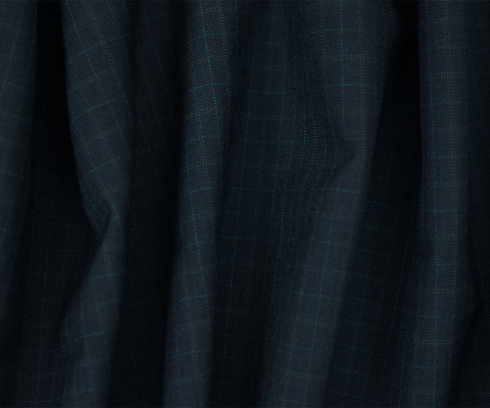 Navy-Gray-Green Wool Polyester Check Pattern Shirting Woven Fabric