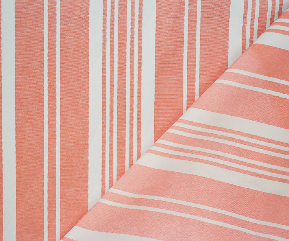 Peach Orange-White Polyester Cotton Striped Shirting Woven Fabric