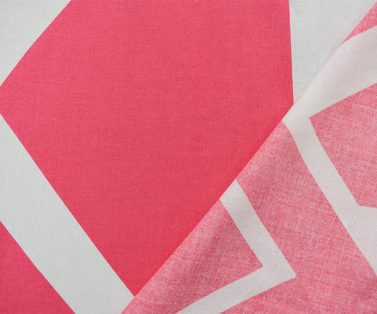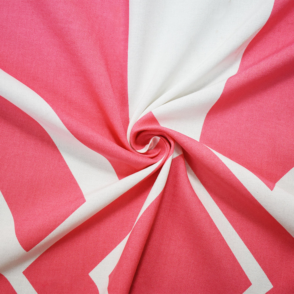 Pink-White Cotton Geometric Printed Shirting Woven Fabric