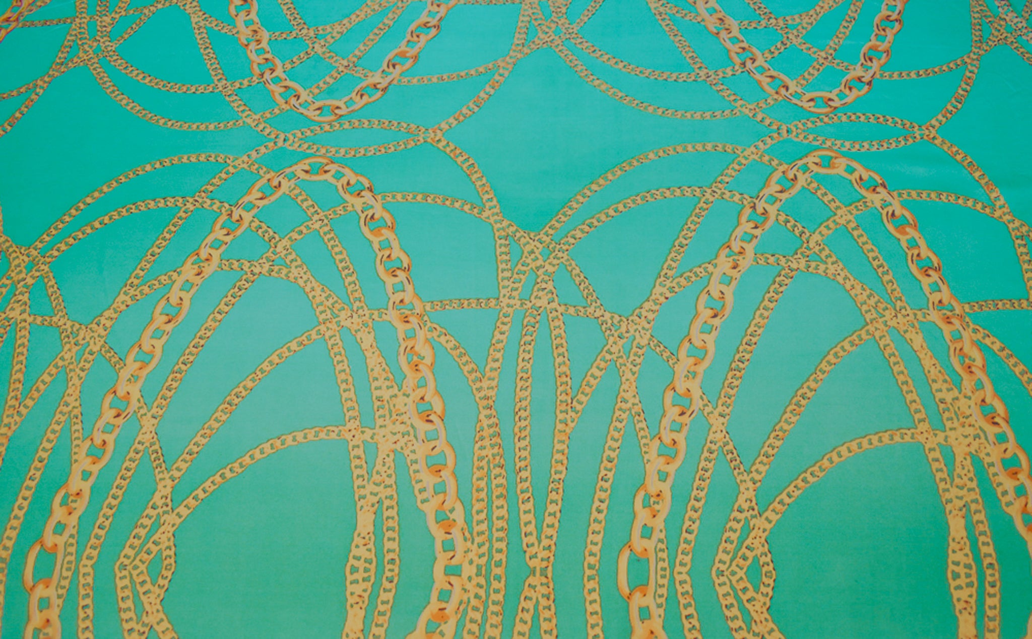 Aqua Teal-Multi Chain Printed Stretch Silk Jersey Knit Fabric