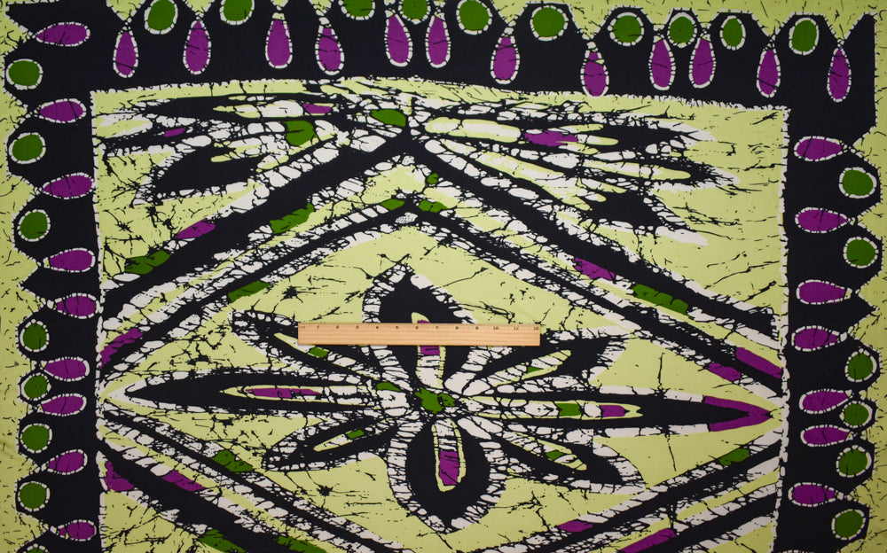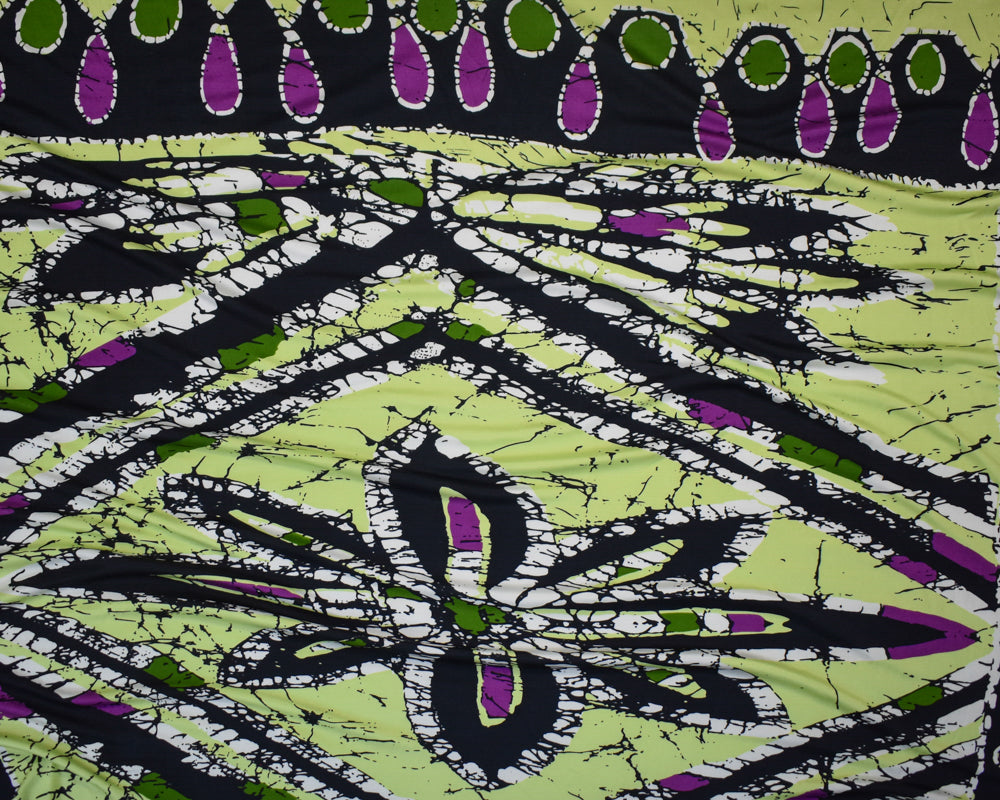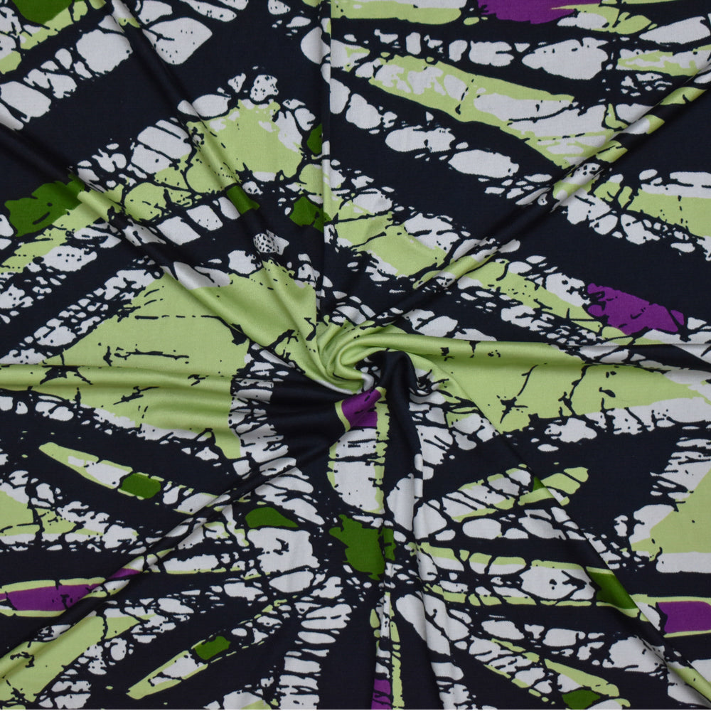 Black-Lime-Multi Abstract Floral Printed Stretch Silk Jersey Knit Fabric