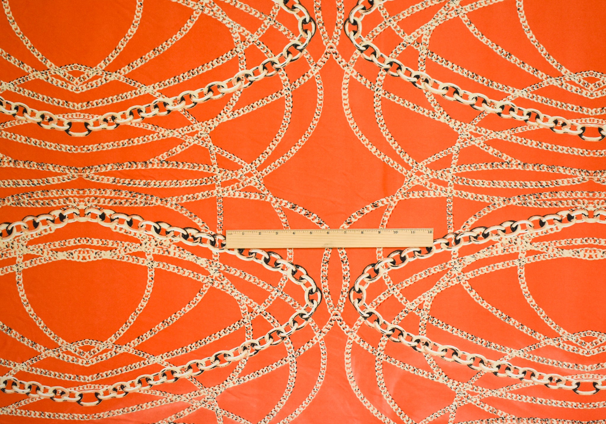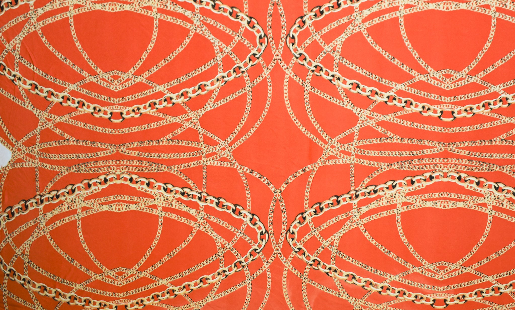 Orange-Beige-Multi Chain Printed Stretch Silk Jersey Knit