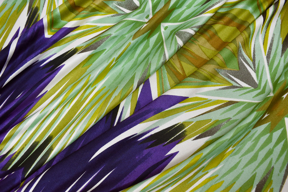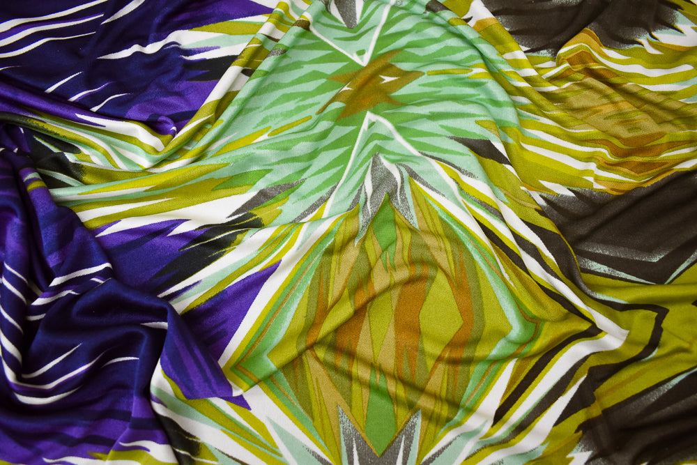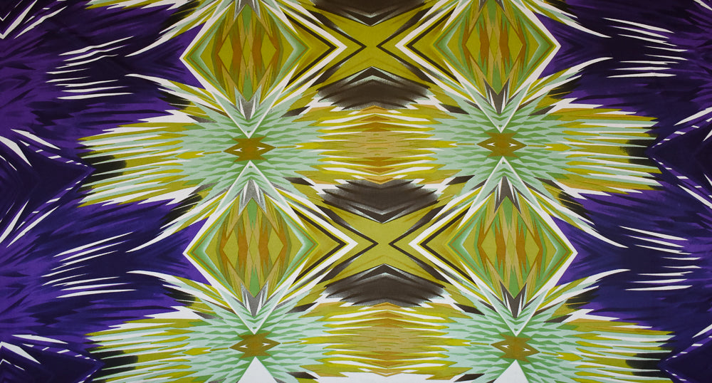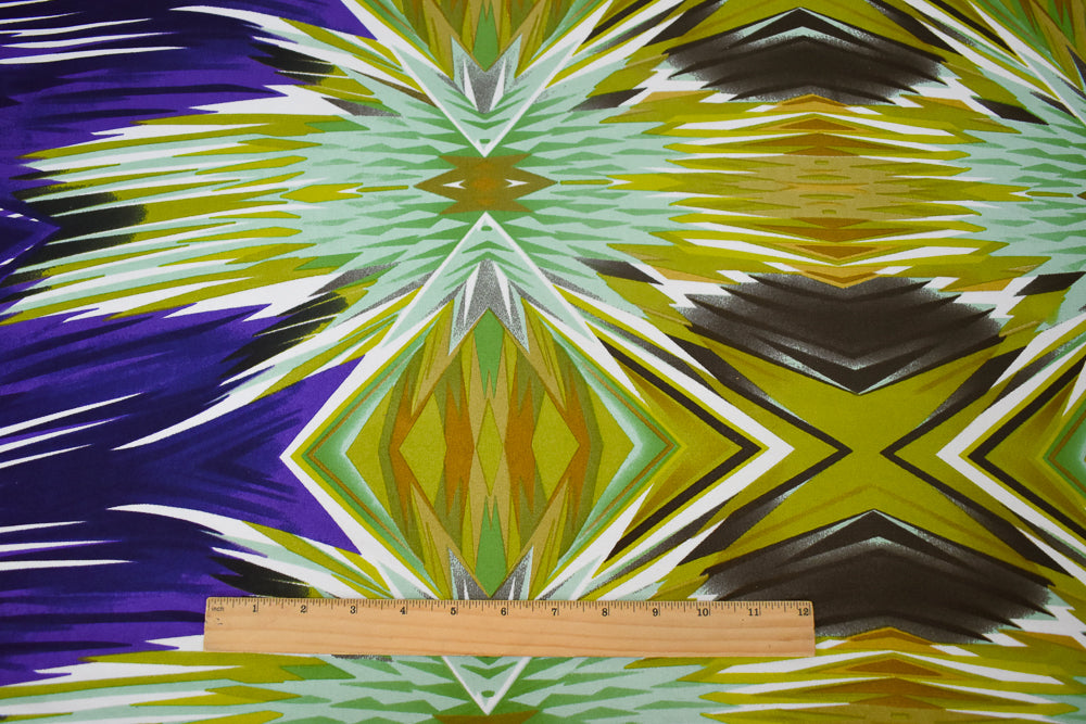 Purple-Green-Multi Abstract Geometric Print Stretch Silk Jersey Knit Fabric