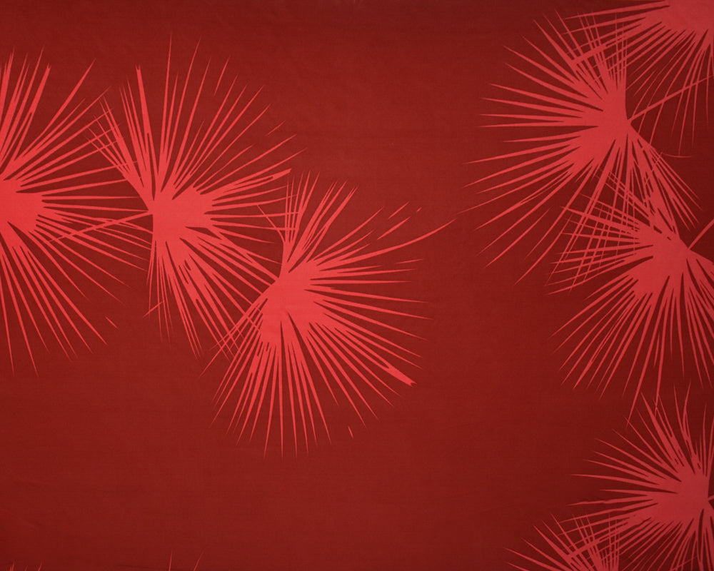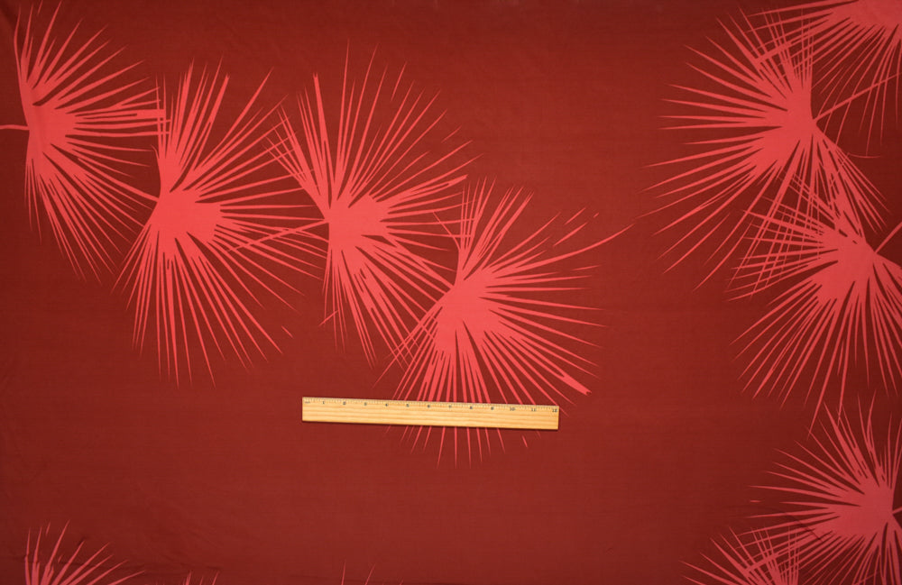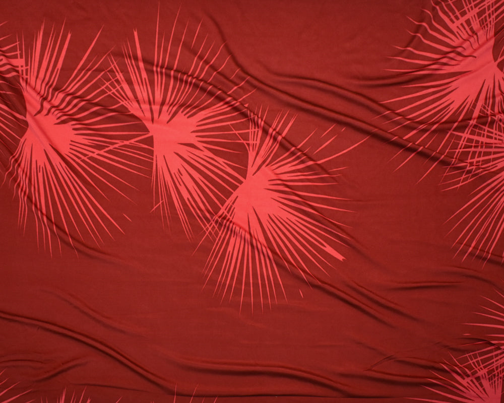 Red-Coral Abstract Leaf Printed Stretch Silk Jersey Knit Fabric