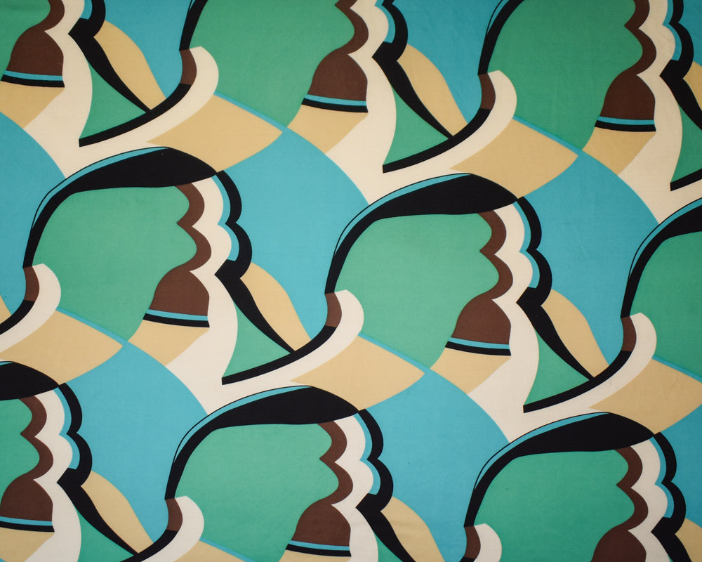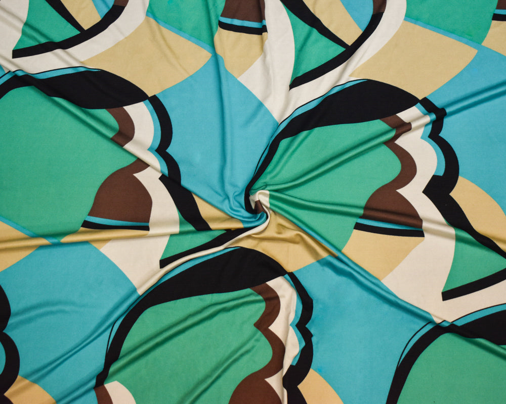 Turquoise-Multi Abstract Printed Stretch Silk Jersey Knit Fabric