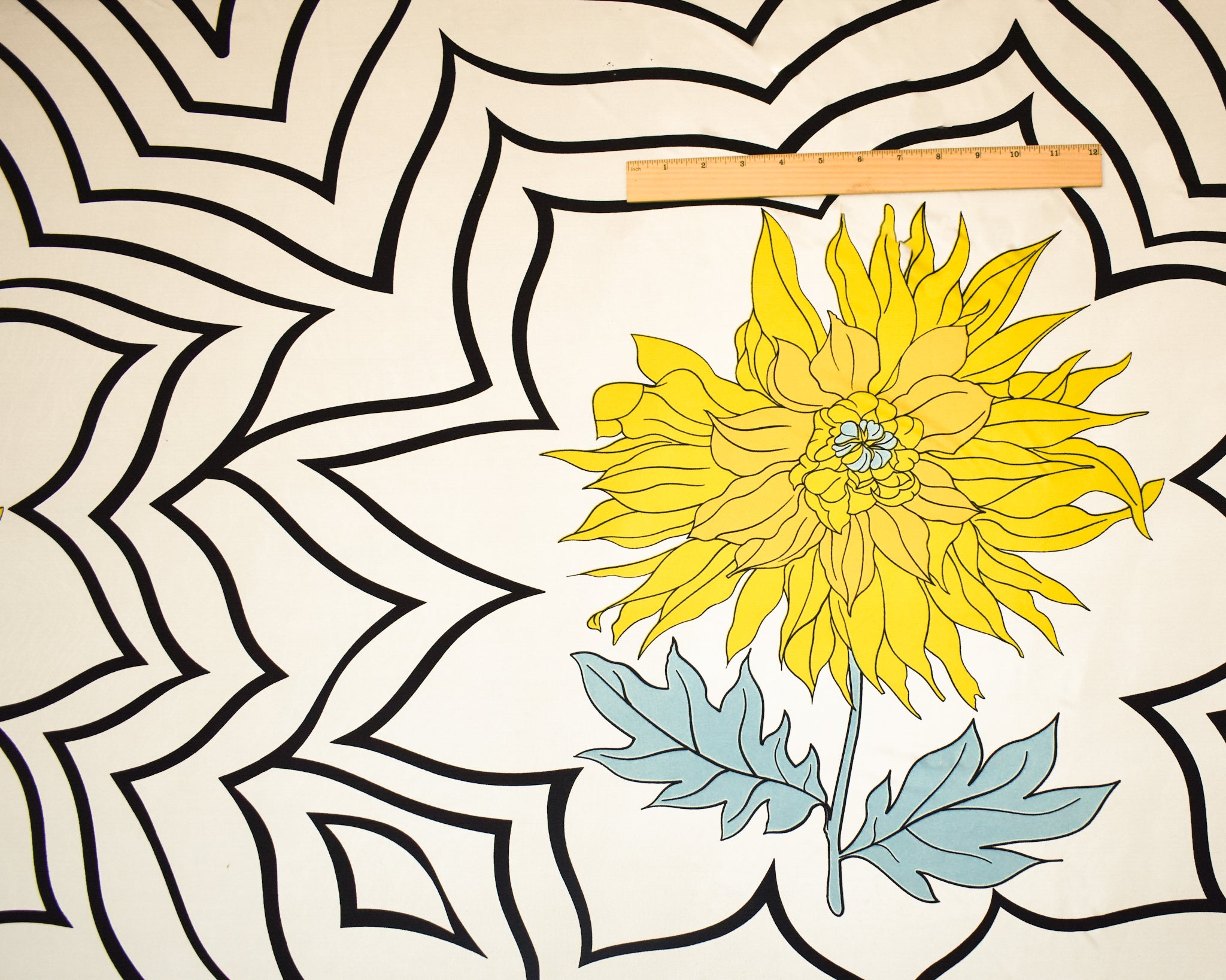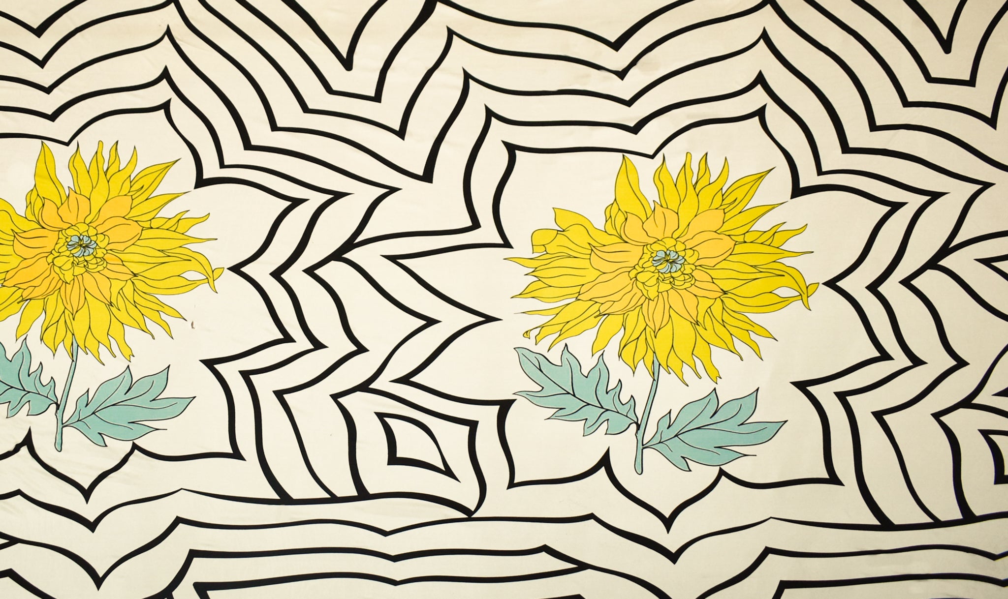 -100% Silk jersey knit fabric printed with a large scale flower and abstract line patterns