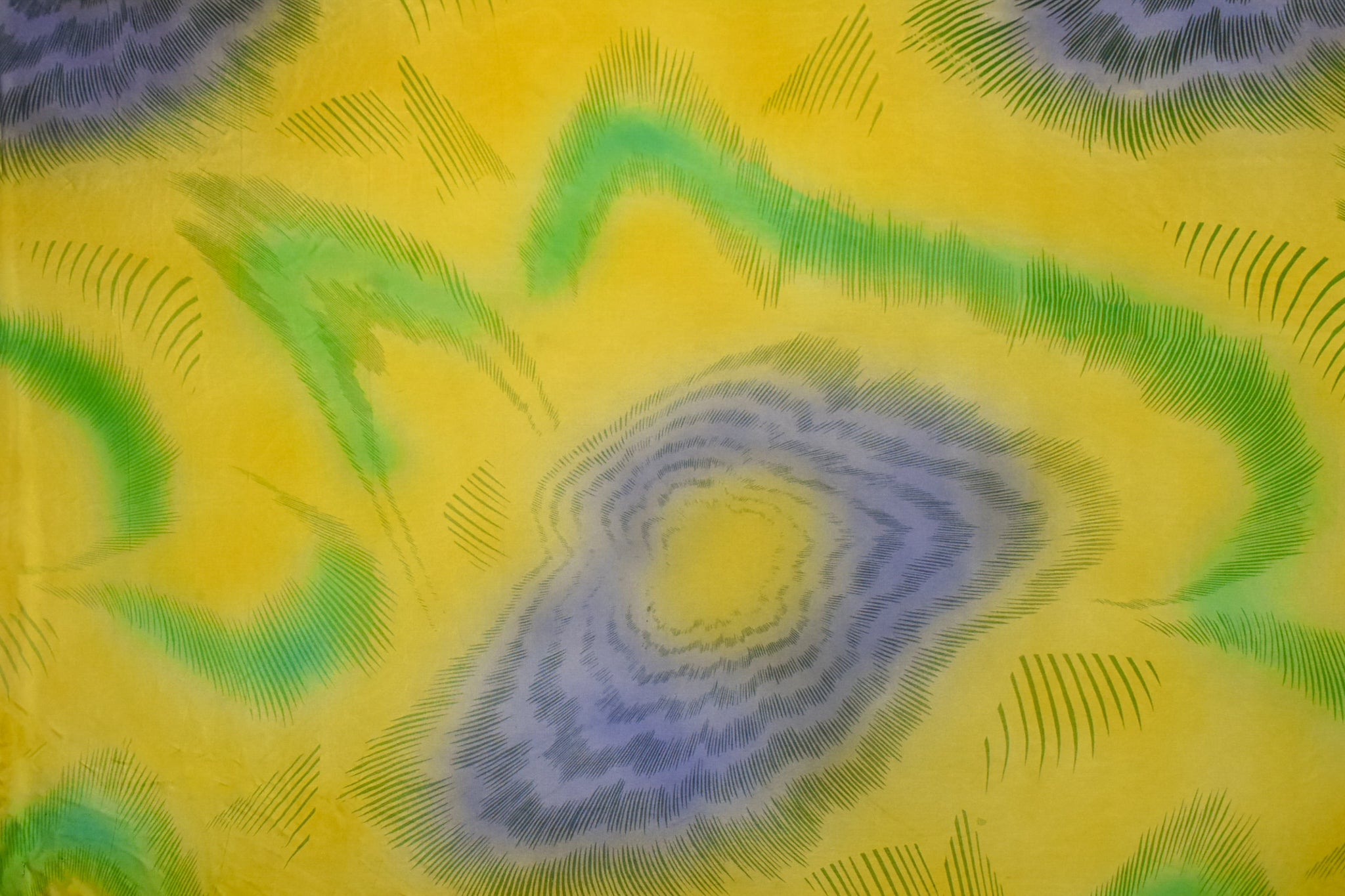 Yellow-Green-Multi Tye Die Stripes Printed Silk Jersey Knit Fabric