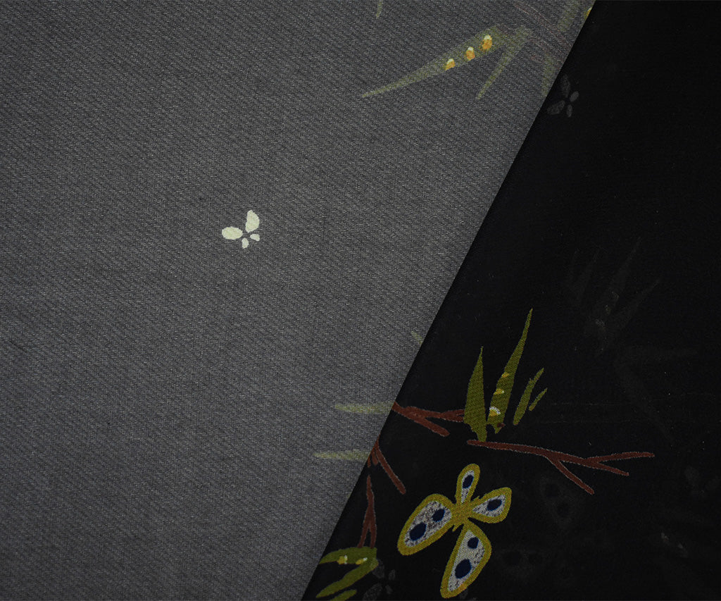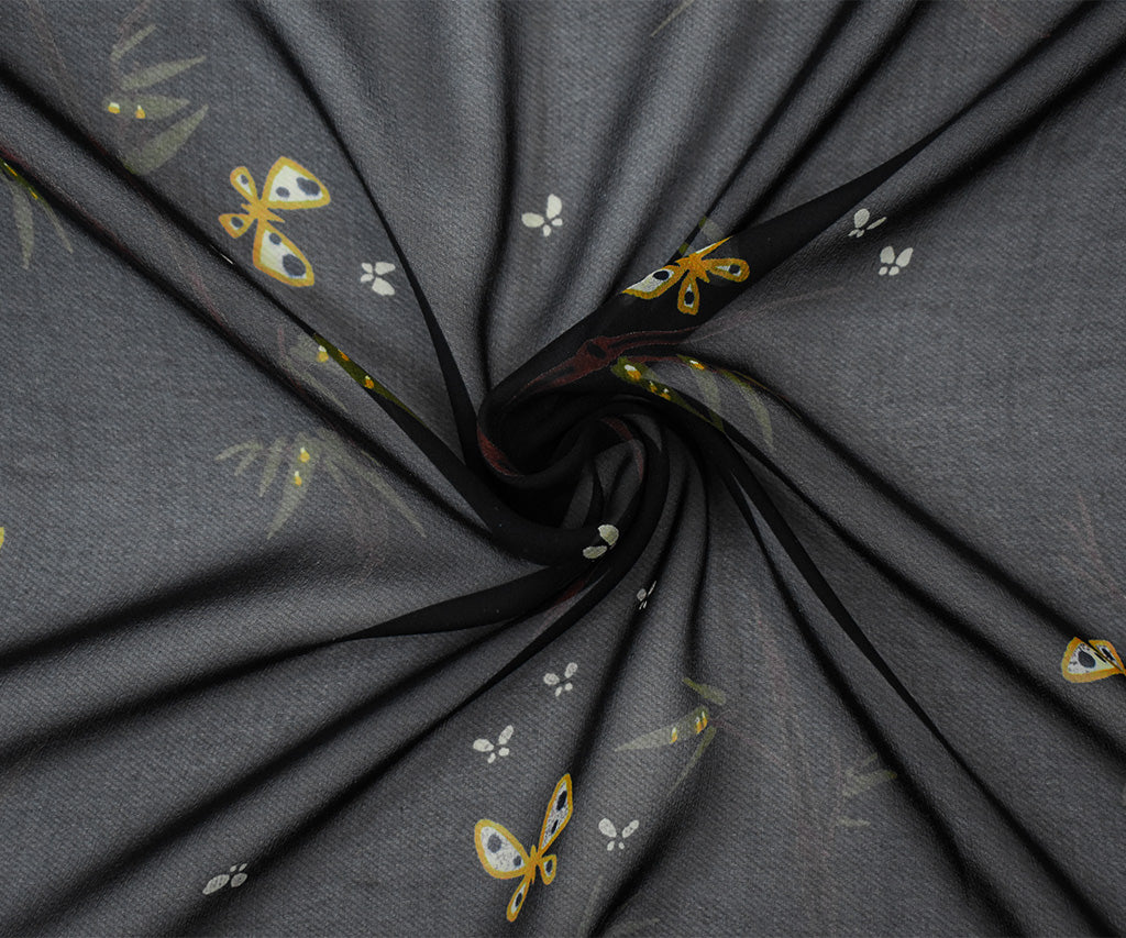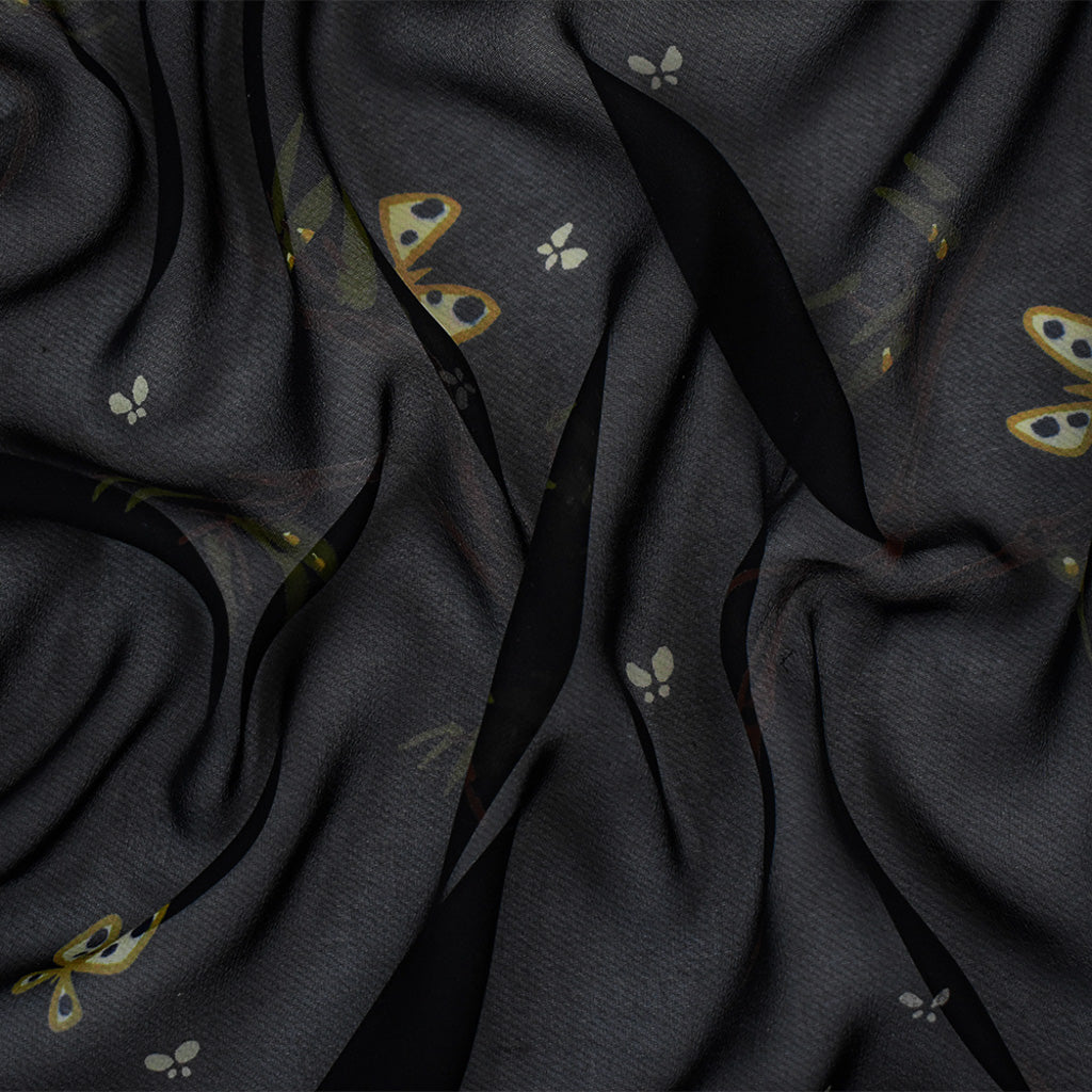 Black-Brown-Multi Silk Butterfly Branch Printed Chiffon Woven Fabric