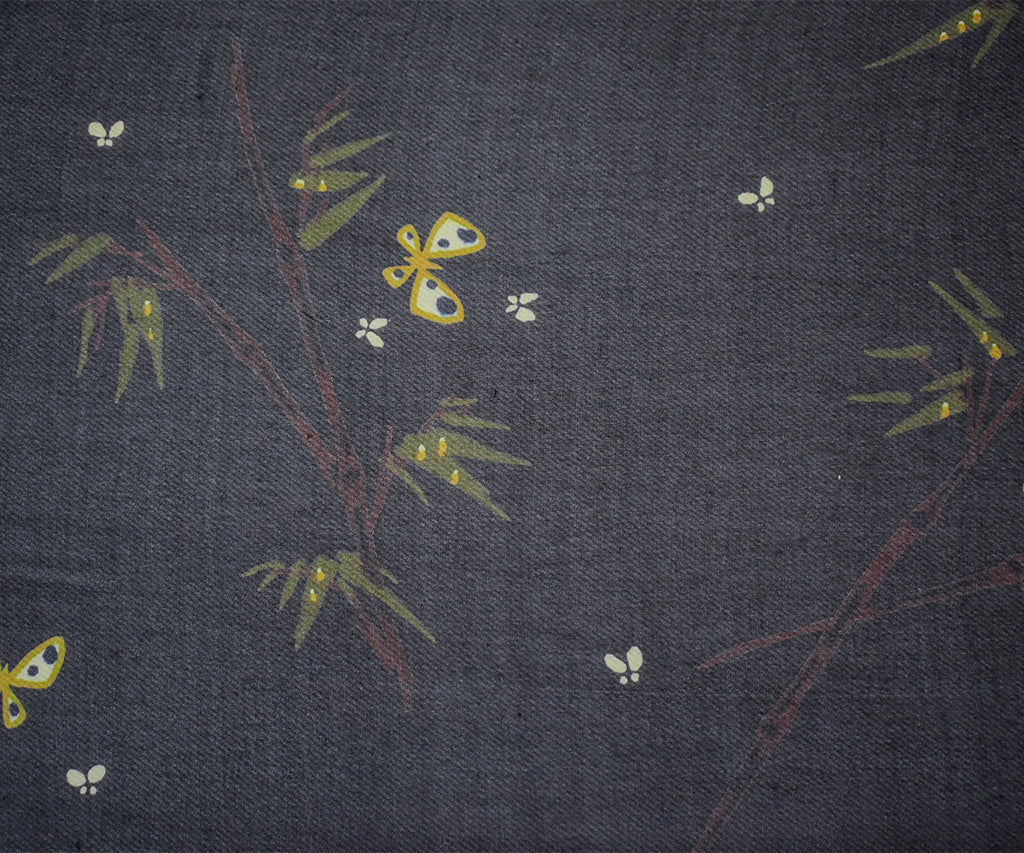 -100% silk chiffon woven fabric printed with butterflies, and branches with leaves.