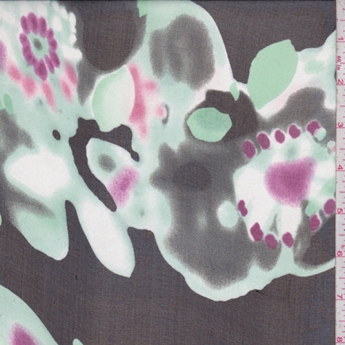 Black/Mint/Fuchsia Abstract Floral Silk Chiffon Fabric