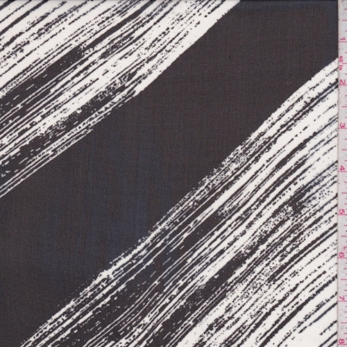 Black/White Diagonal Brush Stroke Silk Chiffon Fabric