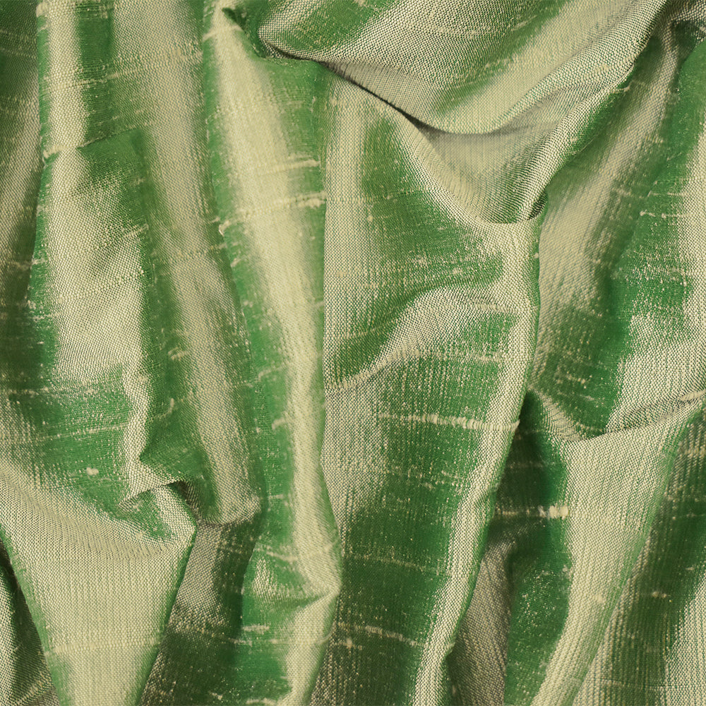 Green-Pearl White Silk Iridescent Dupioni Woven Fabric
