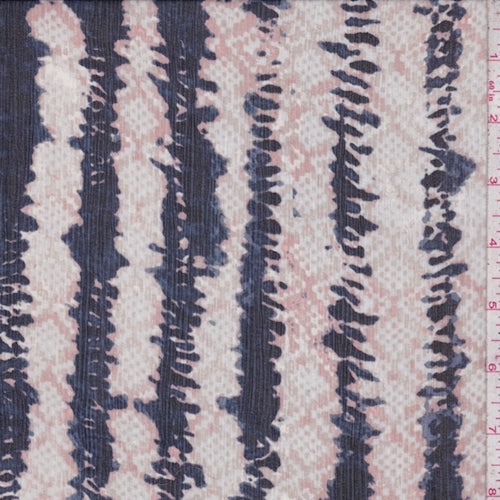 Pink Beige/Ocean Blue Diamond/Stripe Silk Crinkle Chiffon Fabric
