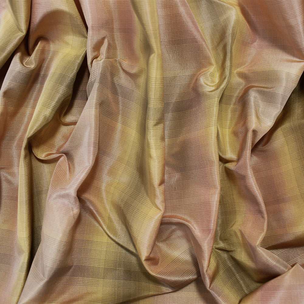 Pink-Yellow-Multi Silk Iridescent Plaid Taffeta Woven Fabric