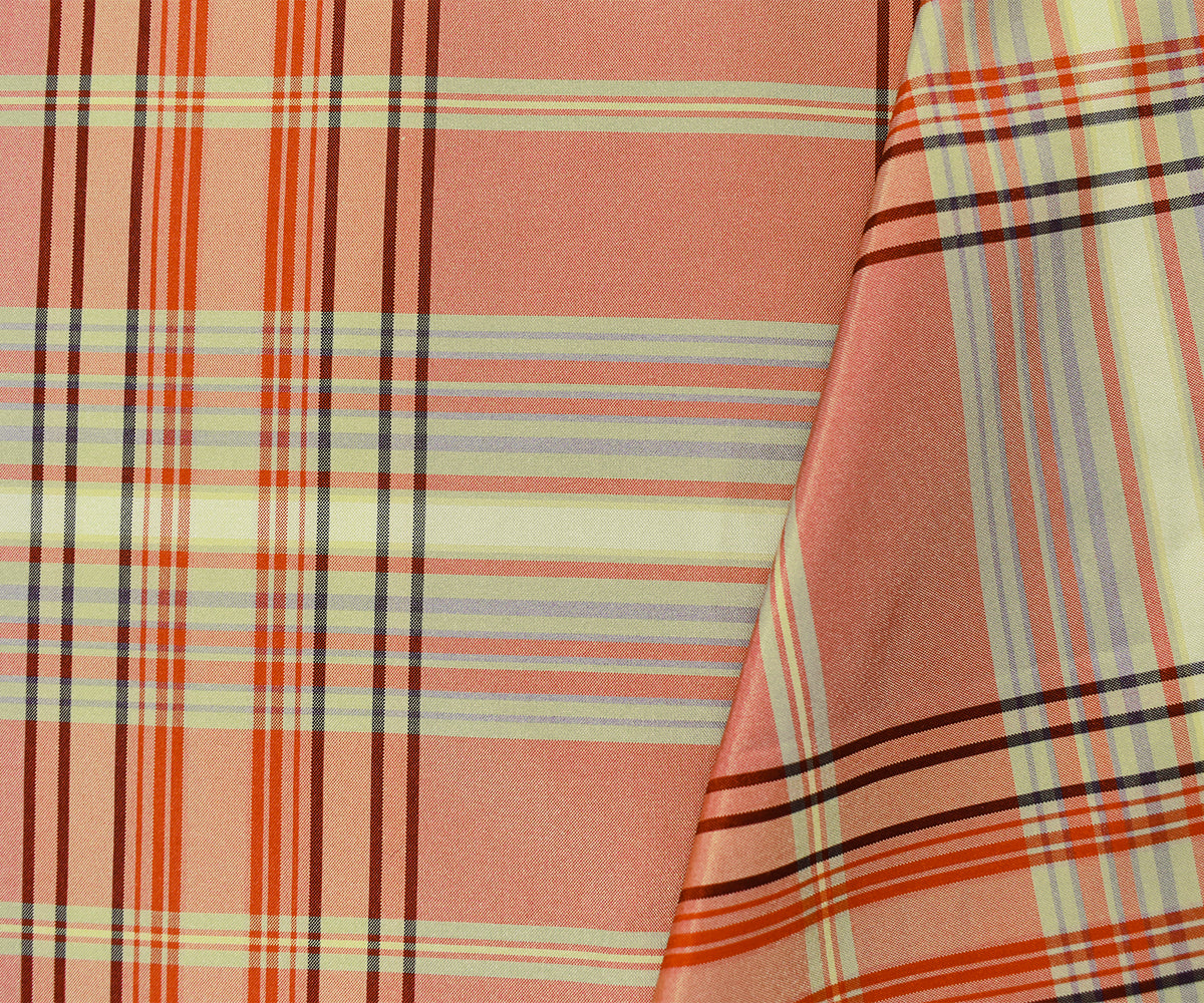 Red-Taupe-Multi Silk Iridescent Plaid Taffeta Woven Fabric