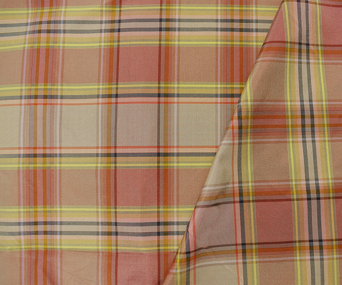 Red-Yellow-Multi Silk Iridescent Plaid Tafetta Woven Fabric