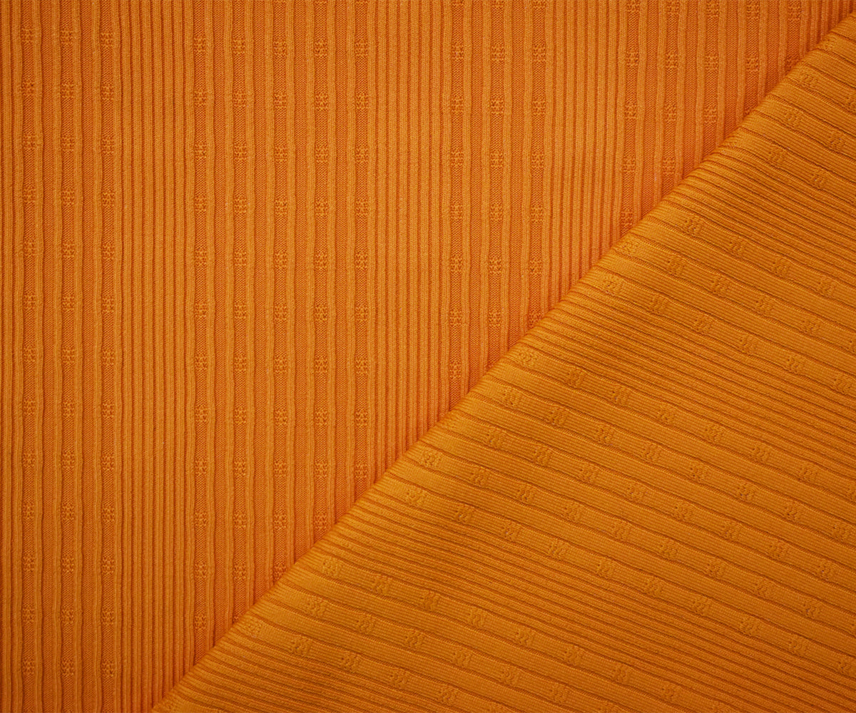 Solid Rib Knit Fabric - A knit fabric in which the wales or vertical rows of stitches intermesh alternately on the face and the back. Ribbed knit fabrics of this type have good elasticity for sewing many types of items as well as finishing necklines, cuffs, collars, and hems.