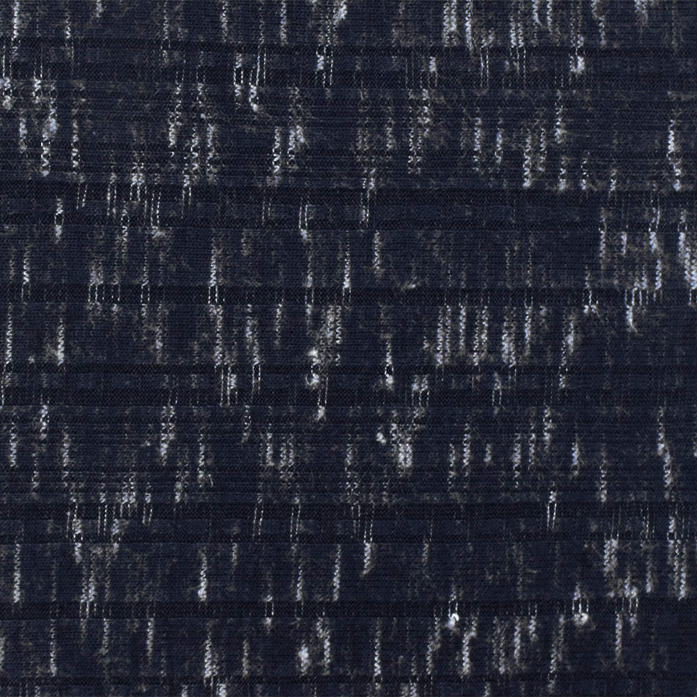 Night Navy-White Slub Stretch Multi Rib Knit Fabric